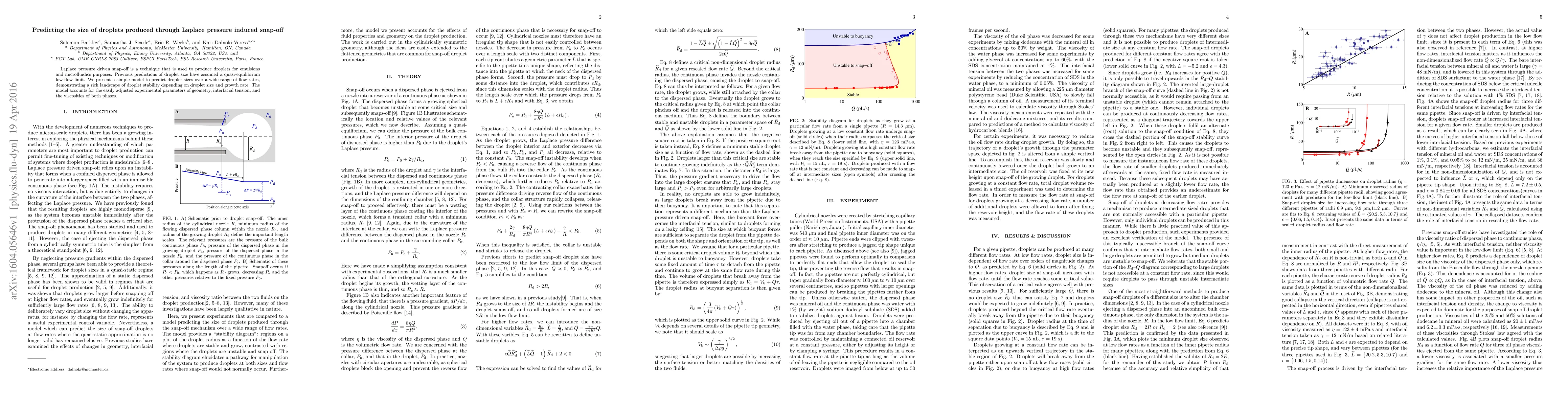 Laplace pressure driven snap-off is a technique that is used to produce droplets for emulsions and microfluidics purposes. Previous predictions of droplet size have assumed a quasi-equilibrium low flow limit. We present a simple model to predict droplet sizes over a wide range of flow rates, demonstrating a rich landscape of droplet stability depending on droplet size and growth rate. The model accounts for the easily adjusted experimental parameters of geometry, interfacial tension, and the viscosities of both phases.