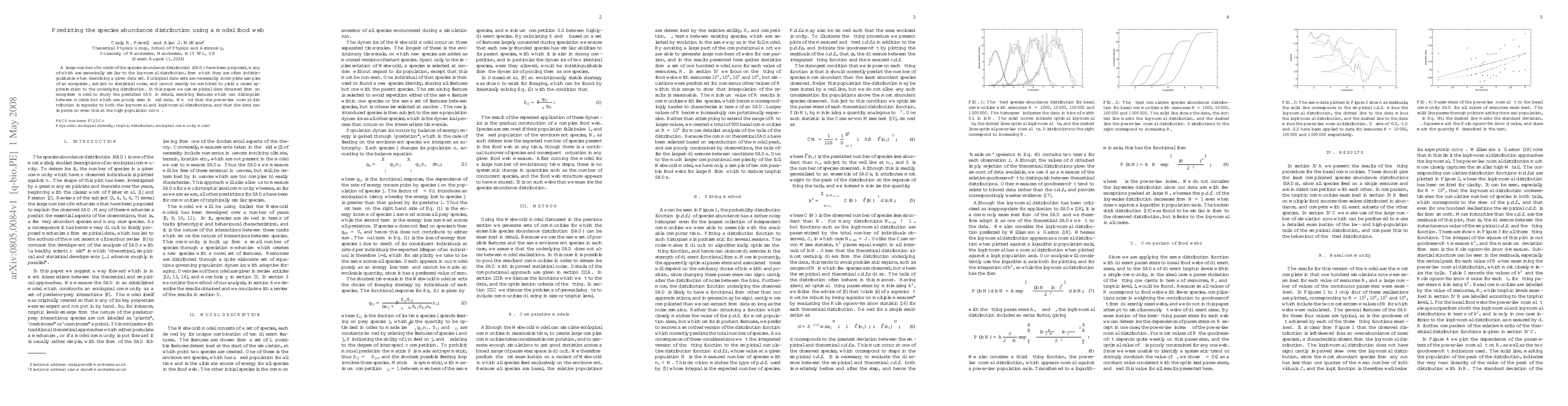 This paper investigates species abundance distribution using a model food web, finding that the power-law normal distribution better predicts SAD compared to the log-normal and logit-normal distributions, with data improving predictions at high population levels.