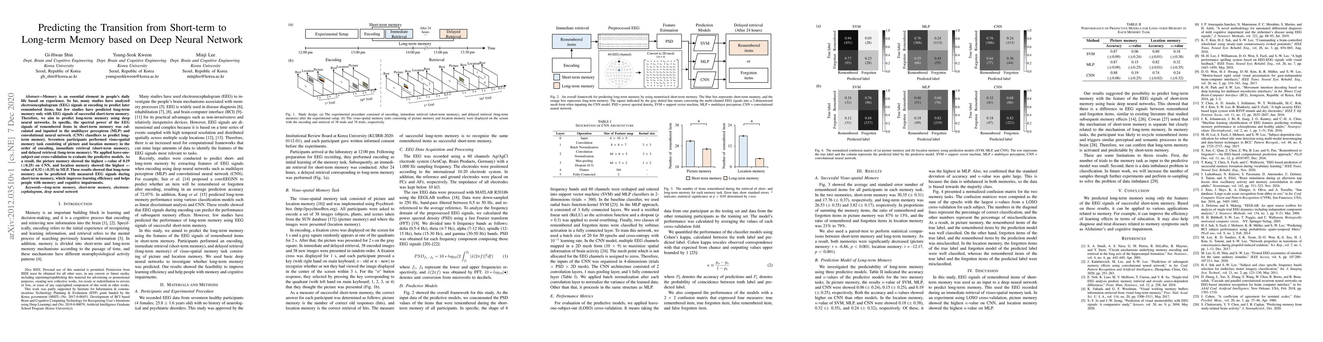 This study uses deep neural networks to predict long-term memory based on EEG signals from successful short-term memory. The CNN and MLP classifiers achieved the highest kappa values for picture and location memory, respectively, indicating the potential to enhance learning efficiency and support cognitive impairments.