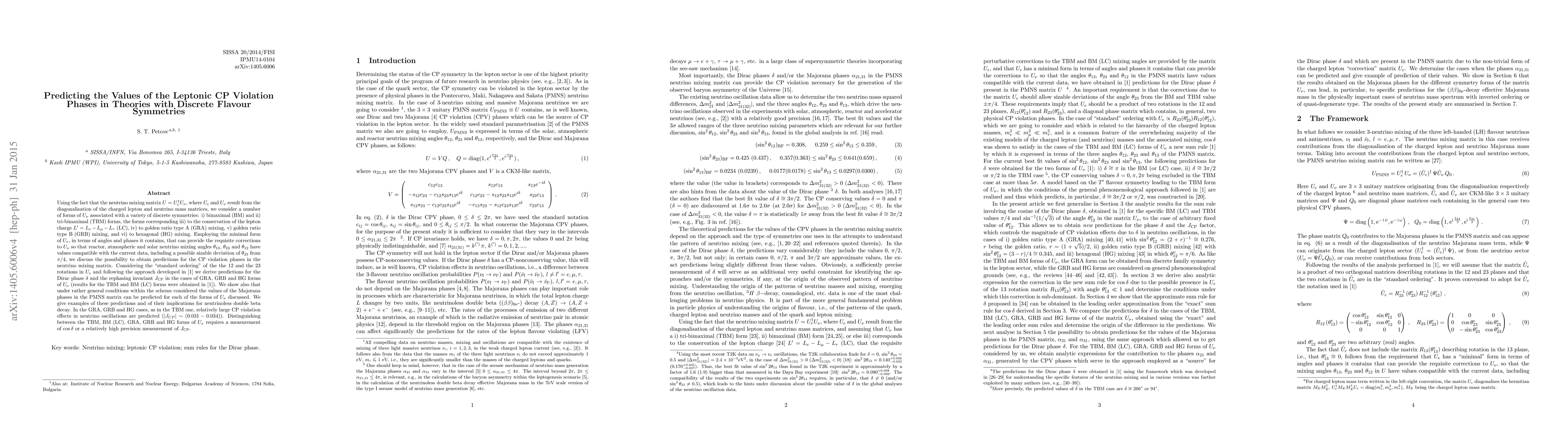 Using the fact that the neutrino mixing matrix $U = U^\dagger_{e}U_{\nu}$, where $U_{e}$ and $U_{\nu}$ result from the diagonalisation of the charged lepton and neutrino mass matrices, we consider a number of forms of $U_{\nu}$ associated with a variety of flavour symmetries: i) bimaximal (BM) and ii) tri-bimaximal (TBM) forms, the forms corresponding iii) to the conservation of the lepton charge $L' = L_e - L_\mu - L_{\tau}$ (LC), iv) to golden ratio type A (GRA) mixing, v) golden ratio type B (GRB) mixing, and iii) to hexagonal (HG) mixing. Employing the minimal form of $U_e$ that can provide the requisite corrections to $U_{\nu}$ so that reactor, atmospheric and solar neutrino mixing angles $\theta_{13}$, $\theta_{23}$ and $\theta_{12}$ have values compatible with the current data, including a possible sizable deviation of $\theta_{23}$ from $\pi/4$, we discuss the possibility to obtain predictions for the CP violation phases in the neutrino mixing matrix. Following the approach developed in [1] we derive predictions for the Dirac phase $\delta$ and the rephasing invariant $J_{\rm CP}$ in the cases of GRA, GRB and HG forms of $U_{\nu}$ (results for the TBM and BM (LC) forms were obtained in [1]). We show also that under rather general conditions within the scheme considered the values of the Majorana phases in the PMNS matrix can be predicted for each of the forms of $U_{\nu}$ discussed. We give examples of these predictions and of their implications for neutrinoless double beta decay. In the GRA, GRB and HG cases, as in the TBM one, relatively large CP violation effects in neutrino oscillations are predicted ($|J_{CP}| \sim (0.031 - 0.034)$). Distinguishing between the TBM, BM (LC), GRA, GRB and HG forms of $U_{\nu}$ requires a measurement of $\cos\delta$ or a relatively high precision measurement of $J_{\rm CP}$.