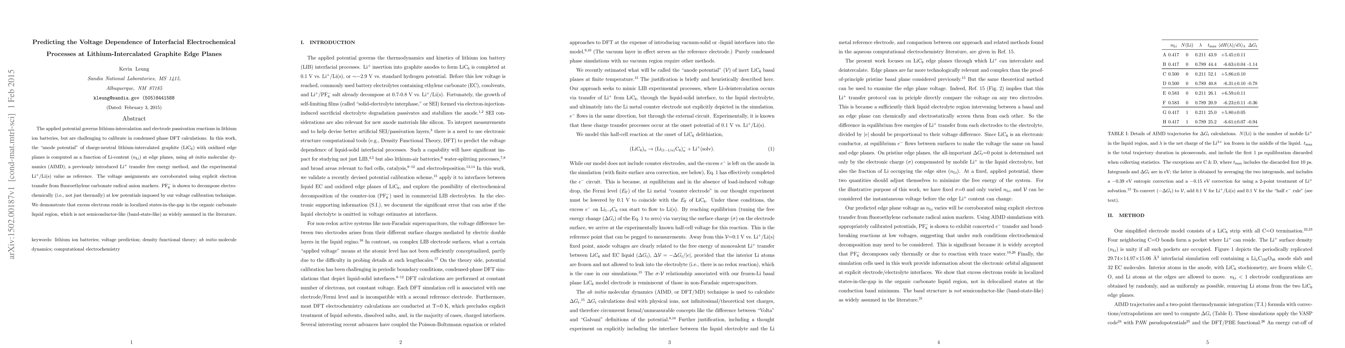 This paper uses ab initio molecular dynamics to predict the voltage dependence of electrochemical processes at lithium-intercalated graphite edge planes, revealing that excess electrons occupy localized states in the organic carbonate liquid, challenging the semiconductor-like band-state assumption. The study also shows that PF6- decomposes electrochemically at low potentials.