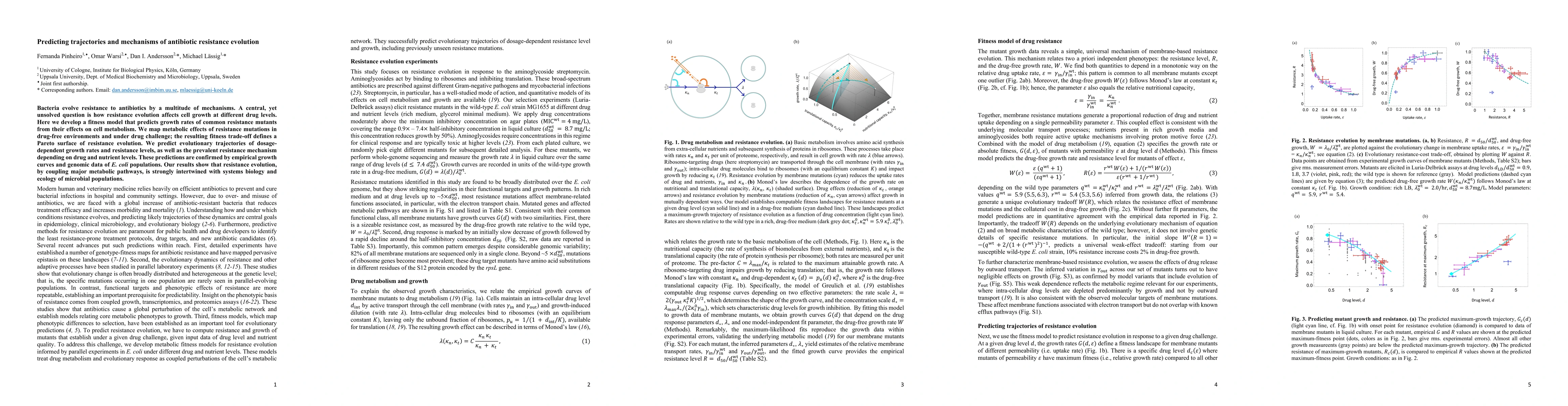 This study develops a fitness model to predict the growth rates of antibiotic-resistant bacterial mutants based on metabolic effects, mapping resistance evolution through a Pareto surface. Empirical data confirms predicted evolutionary trajectories and resistance mechanisms, highlighting the interplay between resistance evolution and microbial systems biology.