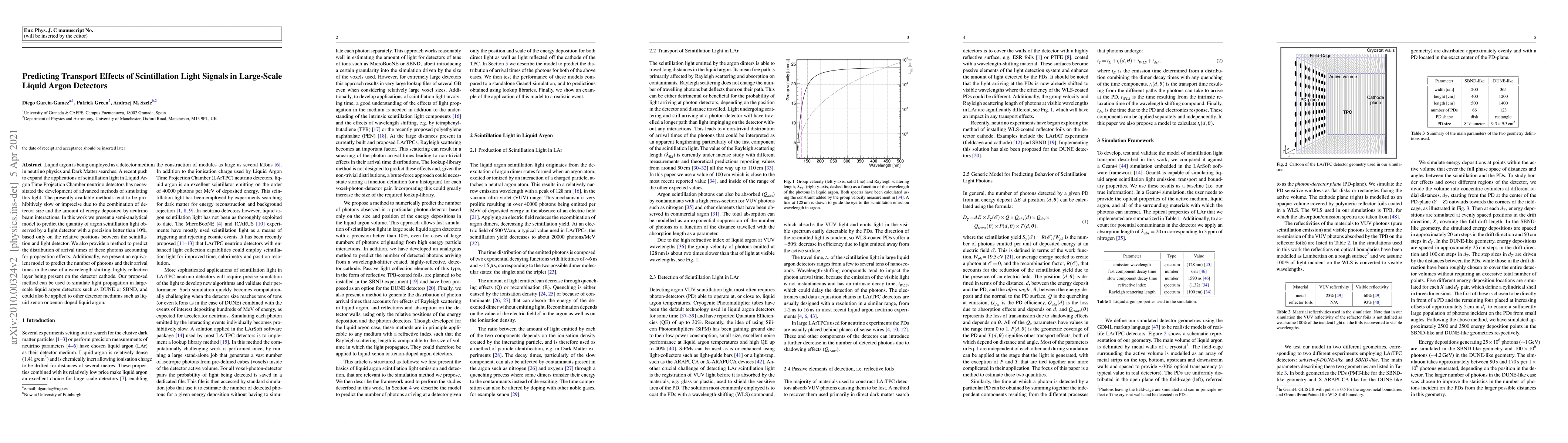 This paper introduces a semi-analytical model to predict the transport effects of scintillation light in large-scale liquid argon detectors, achieving precision better than $10\%$. The method also predicts photon arrival times and is applicable to detectors like DUNE or SBND, and can be extended to other mediums such as liquid xenon.