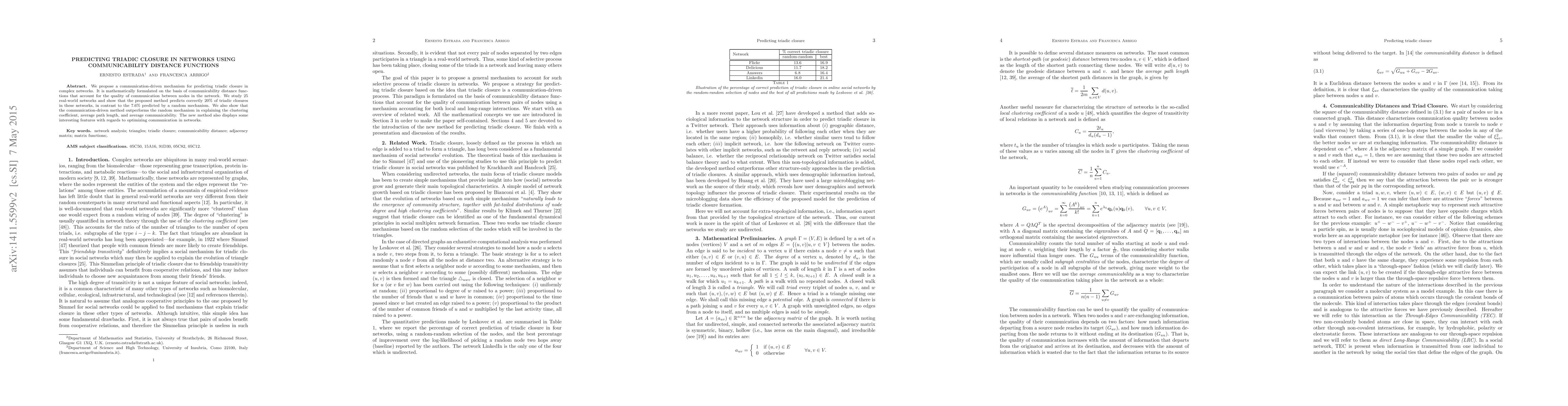 This paper proposes a communication-driven method for predicting triadic closure in networks using communicability distance functions, which better captures communication quality. The method correctly predicts 20% of triadic closures in 25 real-world networks, outperforming a random mechanism and explaining network properties like clustering coefficient and average path length.
