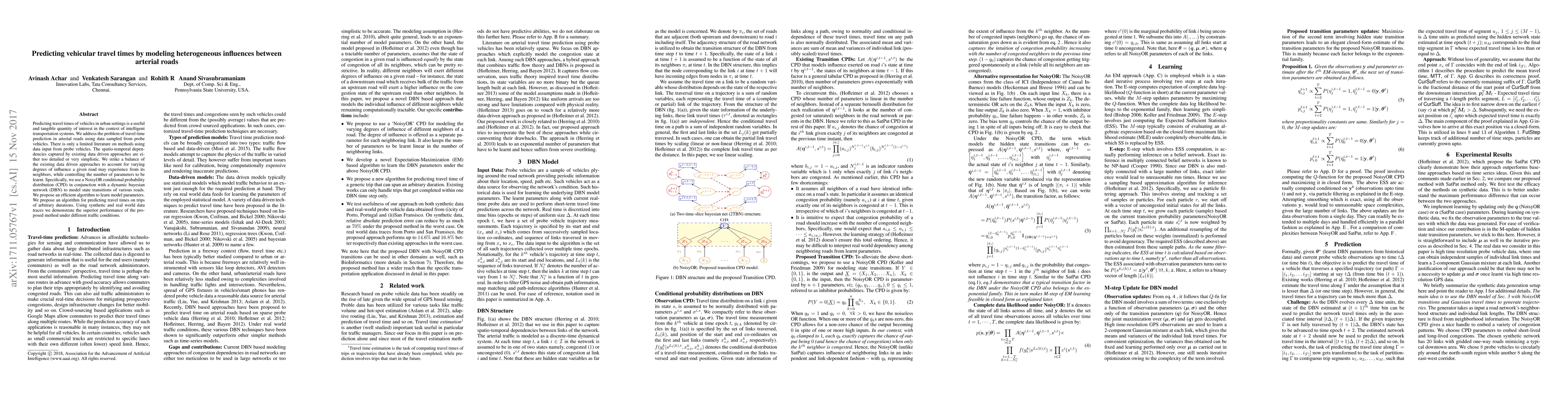 A new method uses data from probe vehicles to predict travel times on arterial roads, balancing detailed and simplistic approaches by modeling varying degrees of influence between roads. The proposed algorithm demonstrates superior performance in predicting travel times under different traffic conditions.