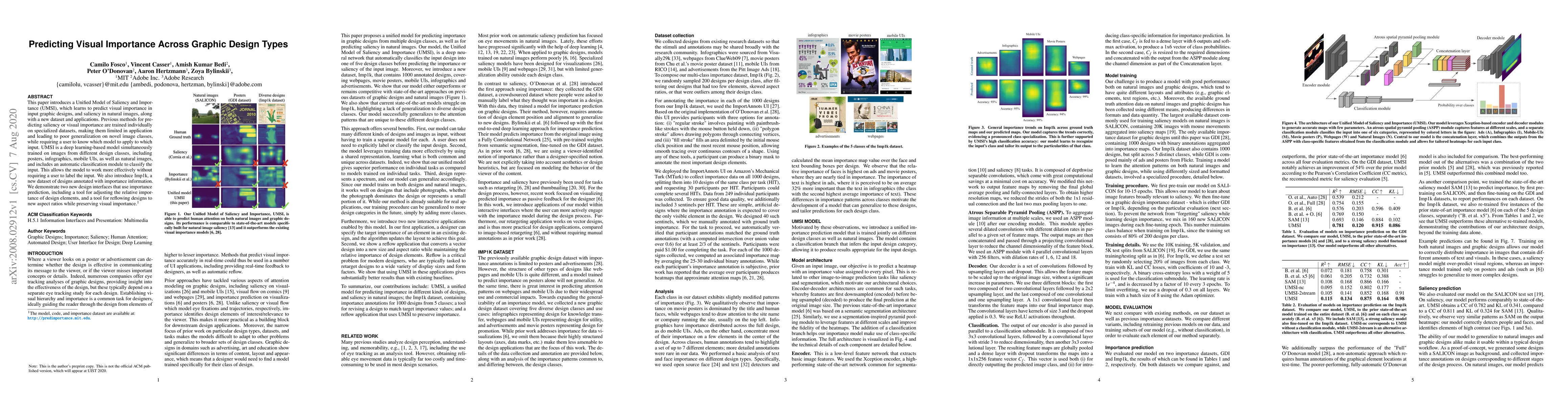 This paper presents a Unified Model of Saliency and Importance (UMSI) that predicts visual importance in various graphic designs and natural images using a deep learning approach. The model is trained on diverse datasets and includes an automatic classification module, enabling effective predictions without user input labeling.