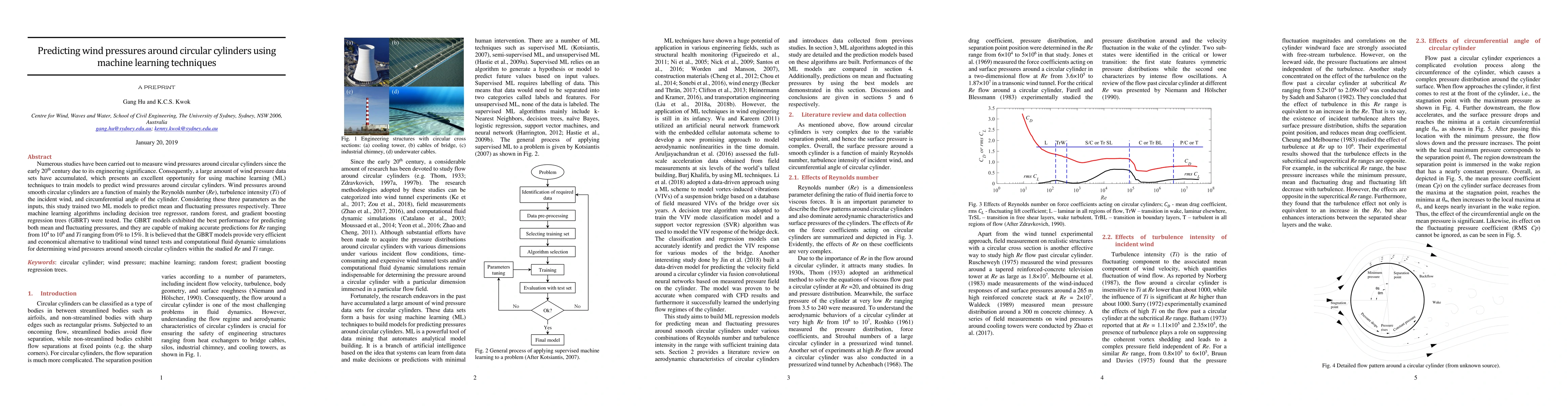 This study trains machine learning models, including decision tree, random forest, and gradient boosting regression trees (GBRT), to predict wind pressures around circular cylinders based on Reynolds number, turbulence intensity, and circumferential angle. The GBRT models showed superior performance, offering an efficient alternative to traditional wind tunnel tests for predicting wind pressures within specified ranges.