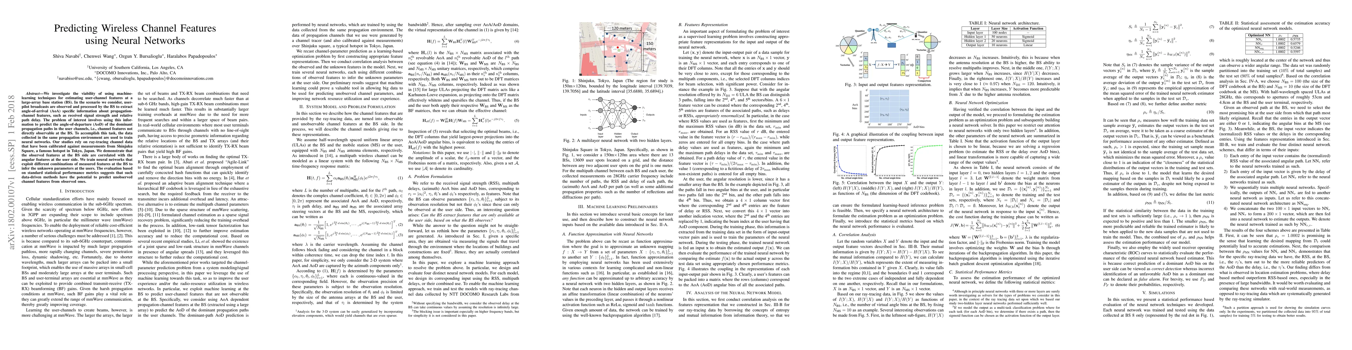 Researchers used machine-learning techniques to predict wireless channel features, such as angle-of-departure, from observed data at a base station. Their neural networks showed promise in inferring unobserved parameters with high accuracy.