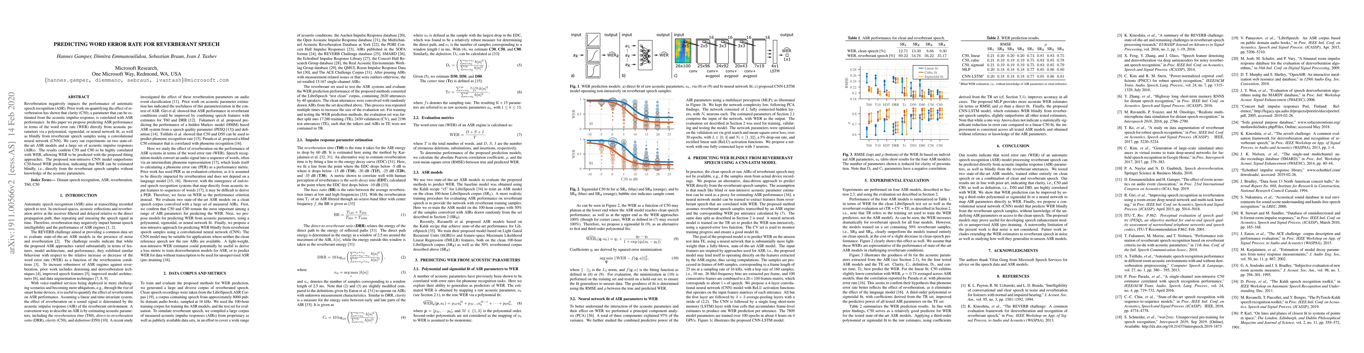 This paper proposes methods to predict the word error rate (WER) in automatic speech recognition (ASR) systems under reverberation, showing that clarity parameters C50 and C80 correlate well with WER. It introduces polynomial, sigmoidal, and neural network fits, and a CNN model that outperforms traditional parameter-based predictions by estimating WER directly from reverberant speech samples.