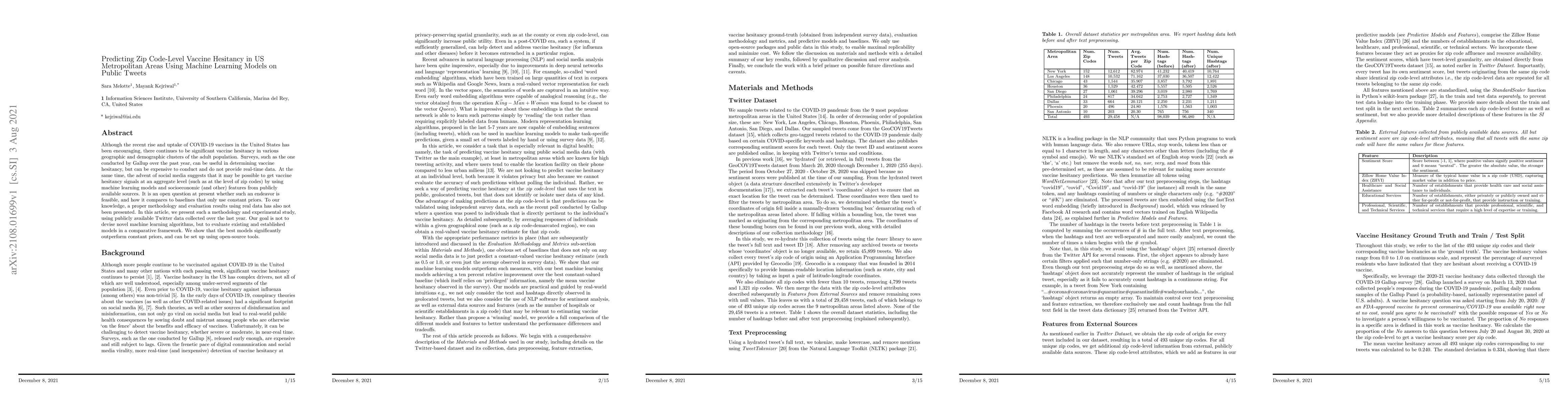 Although the recent rise and uptake of COVID-19 vaccines in the United States has been encouraging, there continues to be significant vaccine hesitancy in various geographic and demographic clusters of the adult population. Surveys, such as the one conducted by Gallup over the past year, can be useful in determining vaccine hesitancy, but can be expensive to conduct and do not provide real-time data. At the same time, the advent of social media suggests that it may be possible to get vaccine hesitancy signals at an aggregate level (such as at the level of zip codes) by using machine learning models and socioeconomic (and other) features from publicly available sources. It is an open question at present whether such an endeavor is feasible, and how it compares to baselines that only use constant priors. To our knowledge, a proper methodology and evaluation results using real data has also not been presented. In this article, we present such a methodology and experimental study, using publicly available Twitter data collected over the last year. Our goal is not to devise novel machine learning algorithms, but to evaluate existing and established models in a comparative framework. We show that the best models significantly outperform constant priors, and can be set up using open-source tools.