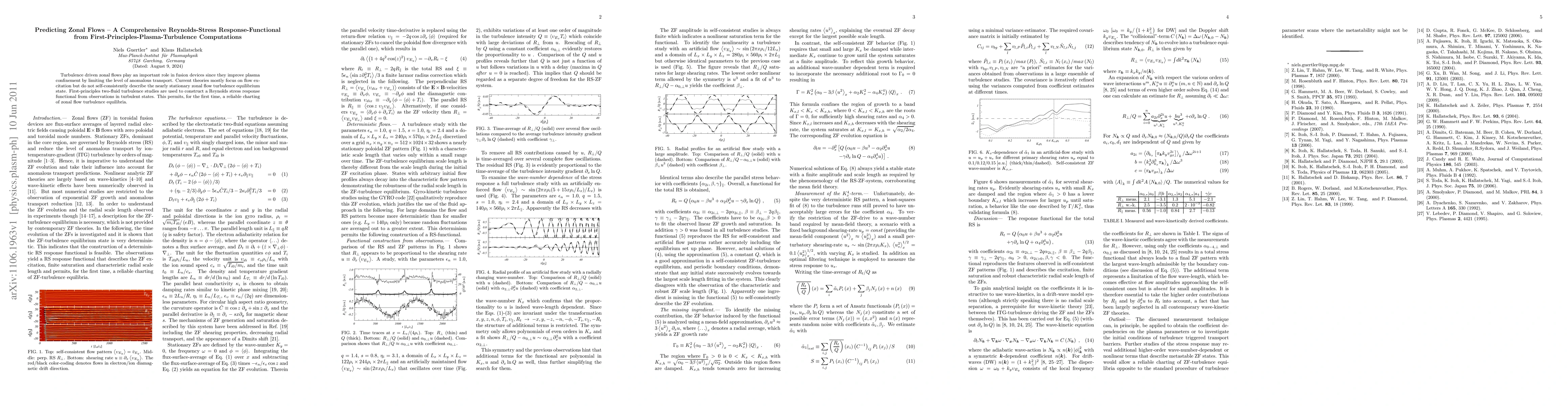 This paper develops a comprehensive Reynolds-stress response functional from first-principles plasma turbulence computations to predict zonal flow equilibria in fusion devices, addressing the gap in current theories that focus on flow excitation without describing the equilibrium state.