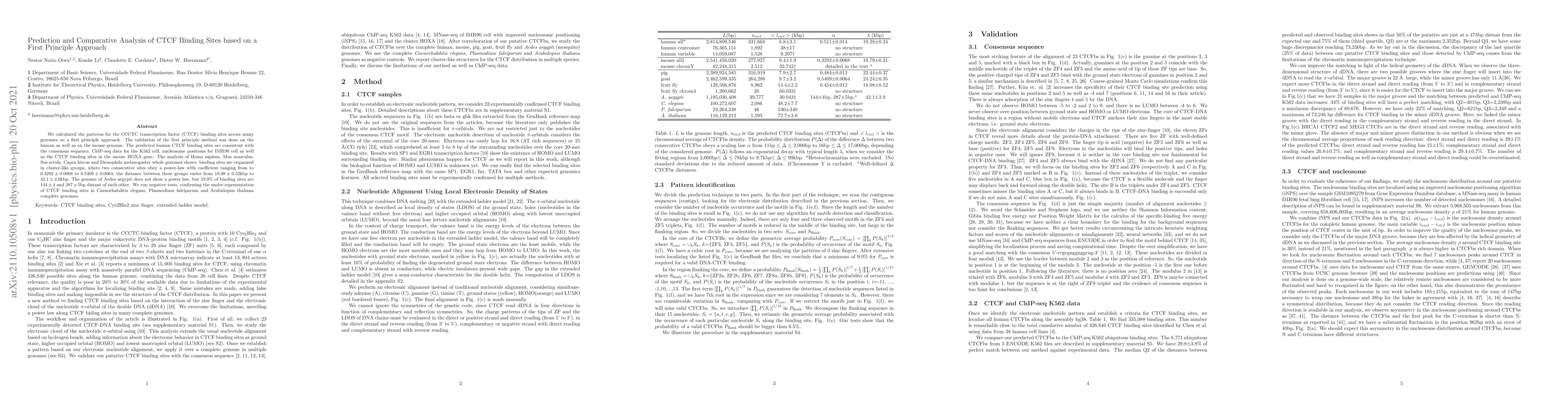 Researchers developed a first principle approach to predict CTCF binding sites across multiple genomes, finding clusters of sites that follow power-law distributions with varying distances between groups, while some genomes like Aedes aegypti show no such pattern.