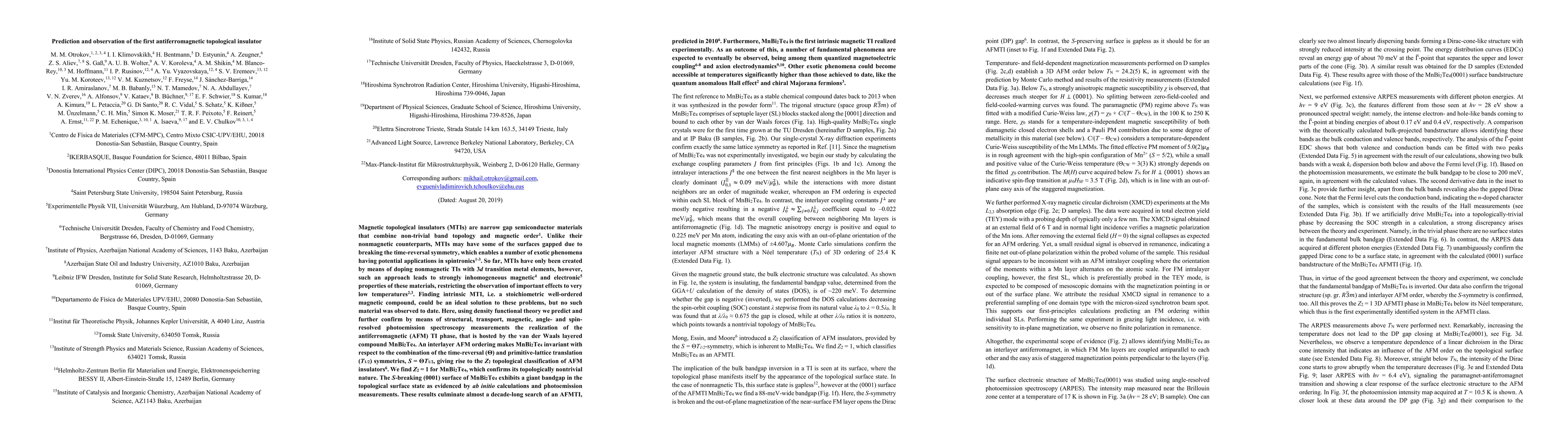This paper reports the first experimental confirmation of the predicted antiferromagnetic topological insulator (AFMTI) phase in the van der Waals compound MnBi$_2$Te$_4$, using density functional theory, Monte Carlo simulations, and various spectroscopic measurements. The material's interlayer AFM ordering and $S$-breaking surface exhibit a giant bandgap, making it a prime candidate for observing quantized magnetoelectric coupling and intrinsic axion insulator states.