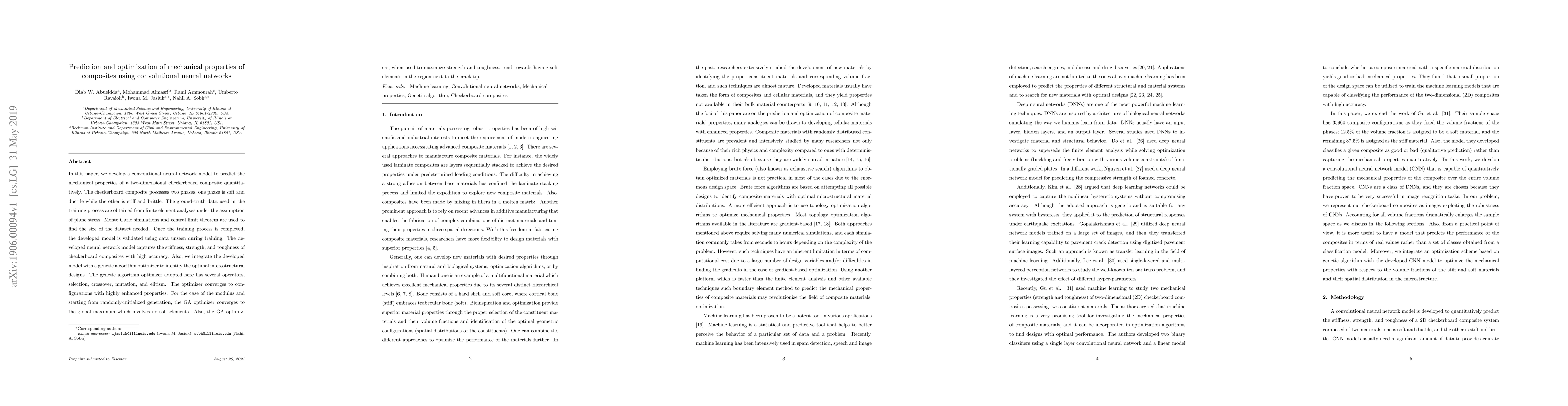A convolutional neural network model is developed to predict mechanical properties of composites with high accuracy, and a genetic algorithm optimizer is used to find optimal microstructural designs that enhance stiffness and toughness.
