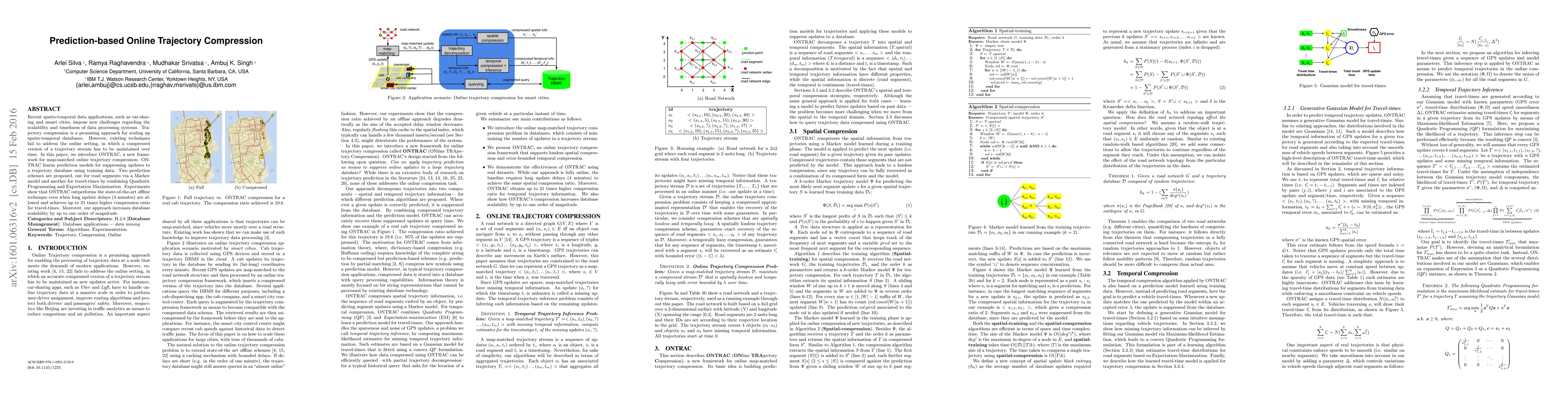 This paper introduces ONTRAC, a framework for online map-matched trajectory compression using prediction models to suppress updates. The proposed method outperforms existing offline techniques, achieving up to 21 times higher compression ratio for travel-times and significantly increasing database scalability.
