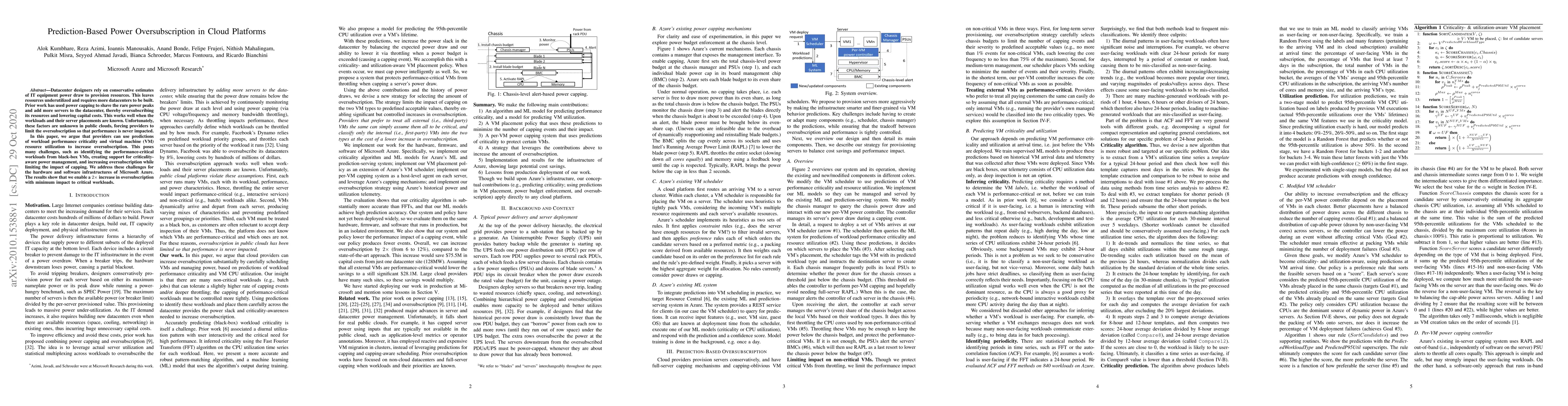 This paper proposes leveraging predictions of workload performance criticality and VM resource utilization to enhance power oversubscription in cloud platforms, addressing challenges like identifying critical workloads and managing power capping. The results demonstrate a 2x increase in oversubscription with minimal impact on critical workloads in Microsoft Azure.