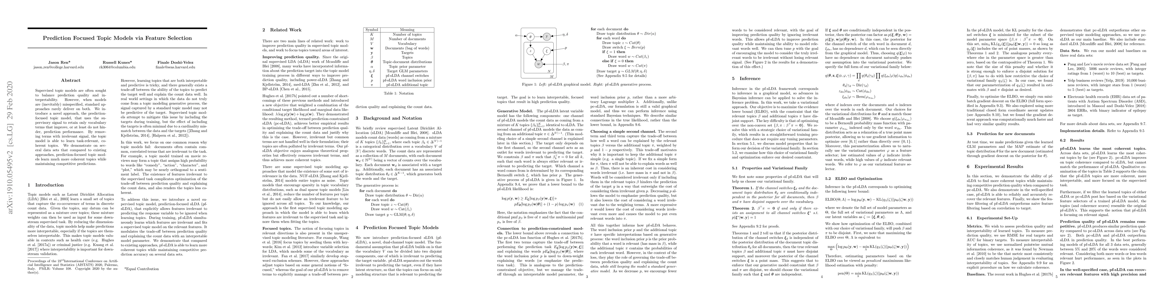 This paper introduces a prediction-focused topic model that selects vocabulary terms based on their relevance to prediction performance, improving both coherence and prediction accuracy compared to existing methods. The approach demonstrates superior results on multiple datasets.