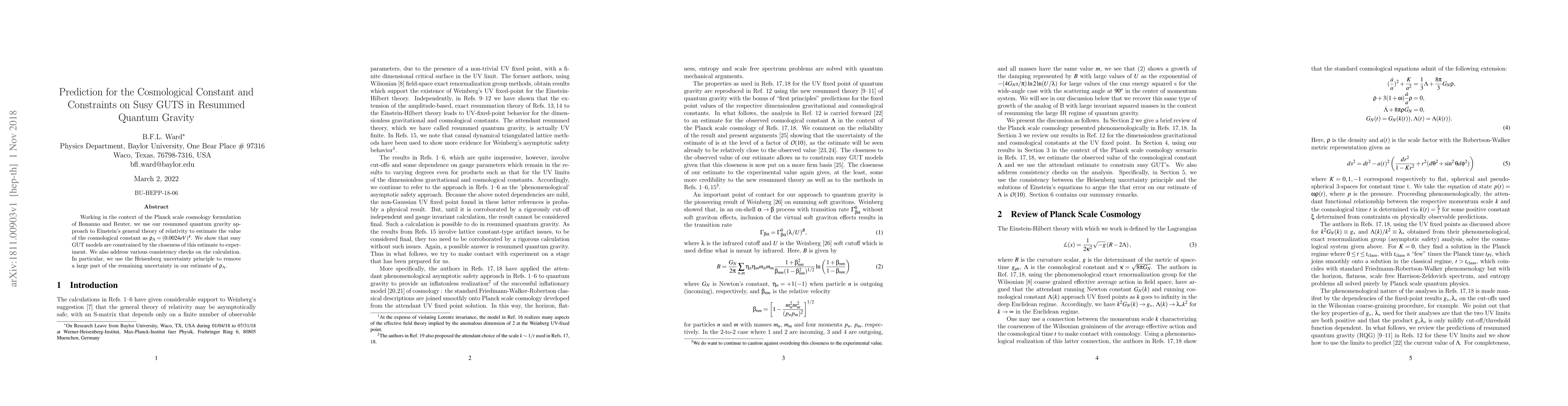 Summary: This paper estimates the cosmological constant using resummed quantum gravity, finding $\rho_\Lambda =(0.0024 eV)^4$, and shows that this value constrains supersymmetric grand unified theories (SUSY GUTs). It also addresses consistency checks, notably using the Heisenberg uncertainty principle to reduce remaining uncertainties.