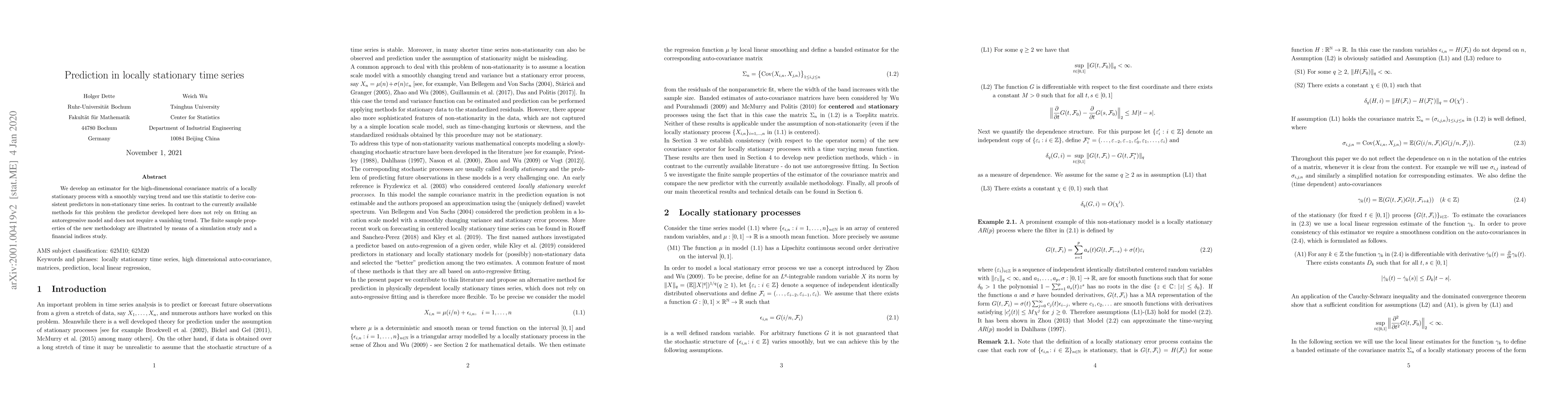 We develop an estimator for the high-dimensional covariance matrix of a locally stationary process with a smoothly varying trend and use this statistic to derive consistent predictors in non-stationary time series. In contrast to the currently available methods for this problem the predictor developed here does not rely on fitting an autoregressive model and does not require a vanishing trend. The finite sample properties of the new methodology are illustrated by means of a simulation study and a financial indices study.