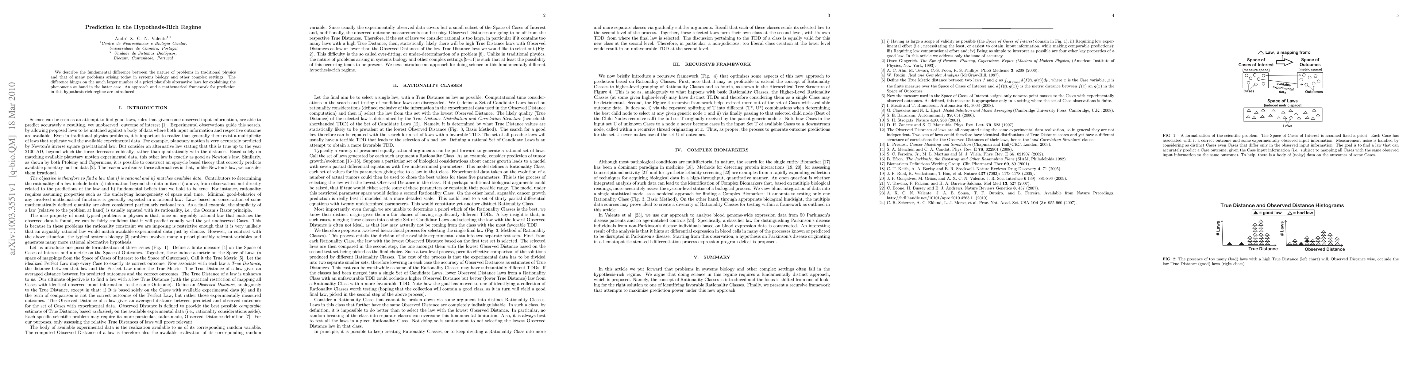 We describe the fundamental difference between the nature of problems in traditional physics and that of many problems arising today in systems biology and other complex settings. The difference hinges on the much larger number of a priori plausible alternative laws for explaining the phenomena at hand in the latter case. An approach and a mathematical framework for prediction in this hypothesis-rich regime are introduced.