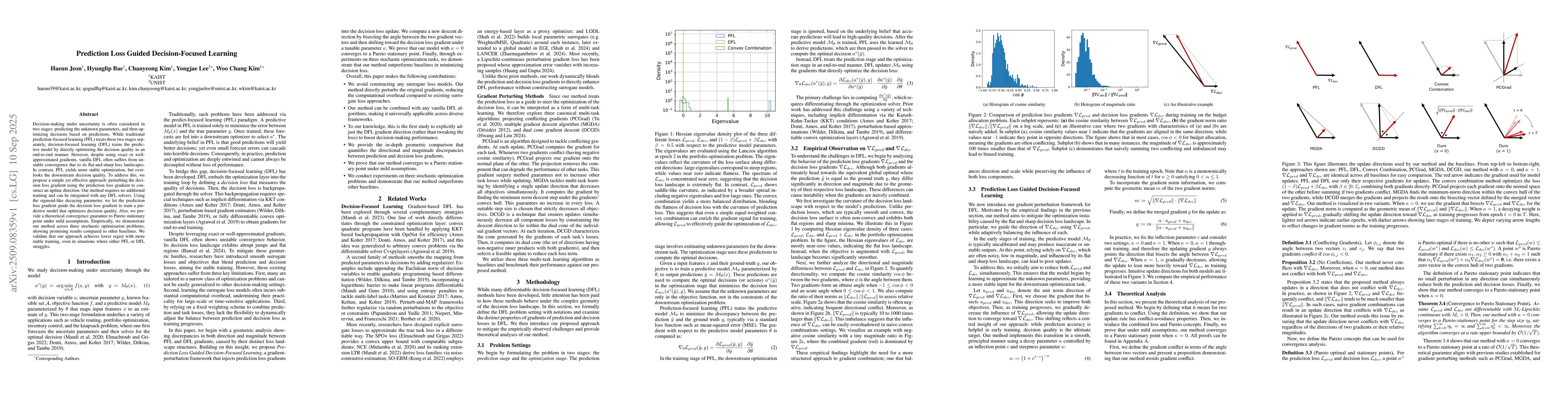 Decision-making under uncertainty is often considered in two stages: predicting the unknown parameters, and then optimizing decisions based on predictions. While traditional prediction-focused learning (PFL) treats these two stages separately, decision-focused learning (DFL) trains the predictive model by directly optimizing the decision quality in an end-to-end manner. However, despite using exact or well-approximated gradients, vanilla DFL often suffers from unstable convergence due to its flat-and-sharp loss landscapes. In contrast, PFL yields more stable optimization, but overlooks the downstream decision quality. To address this, we propose a simple yet effective approach: perturbing the decision loss gradient using the prediction loss gradient to construct an update direction. Our method requires no additional training and can be integrated with any DFL solvers. Using the sigmoid-like decaying parameter, we let the prediction loss gradient guide the decision loss gradient to train a predictive model that optimizes decision quality. Also, we provide a theoretical convergence guarantee to Pareto stationary point under mild assumptions. Empirically, we demonstrate our method across three stochastic optimization problems, showing promising results compared to other baselines. We validate that our approach achieves lower regret with more stable training, even in situations where either PFL or DFL struggles.