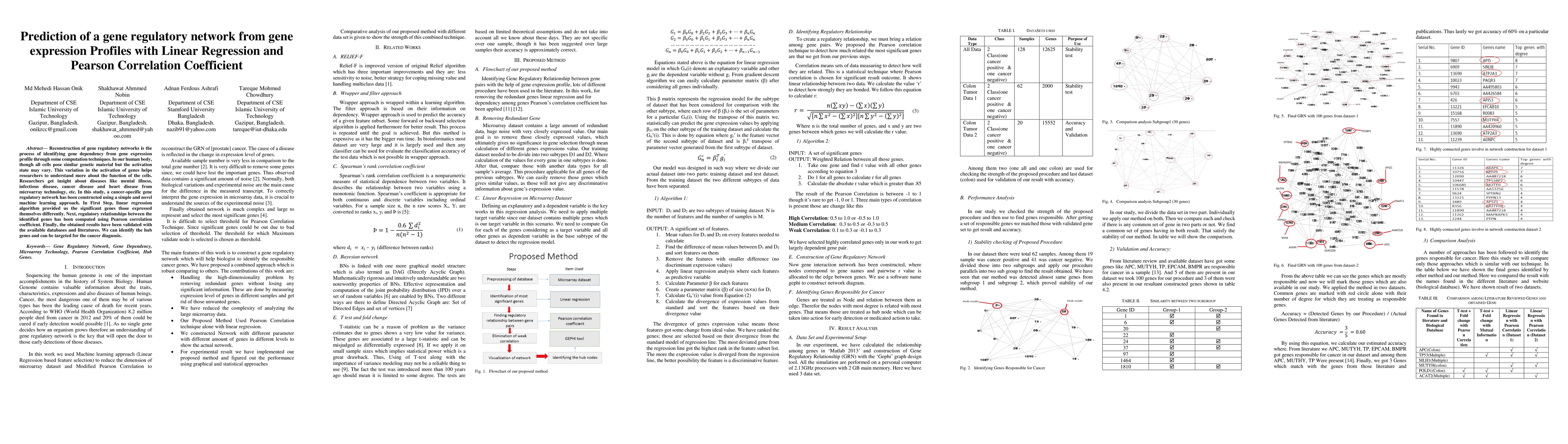 This study constructs a cancer-specific gene regulatory network using linear regression to identify significant genes and Pearson correlation to determine regulatory relationships, validated against existing databases, aiming to identify hub genes for cancer diagnosis.