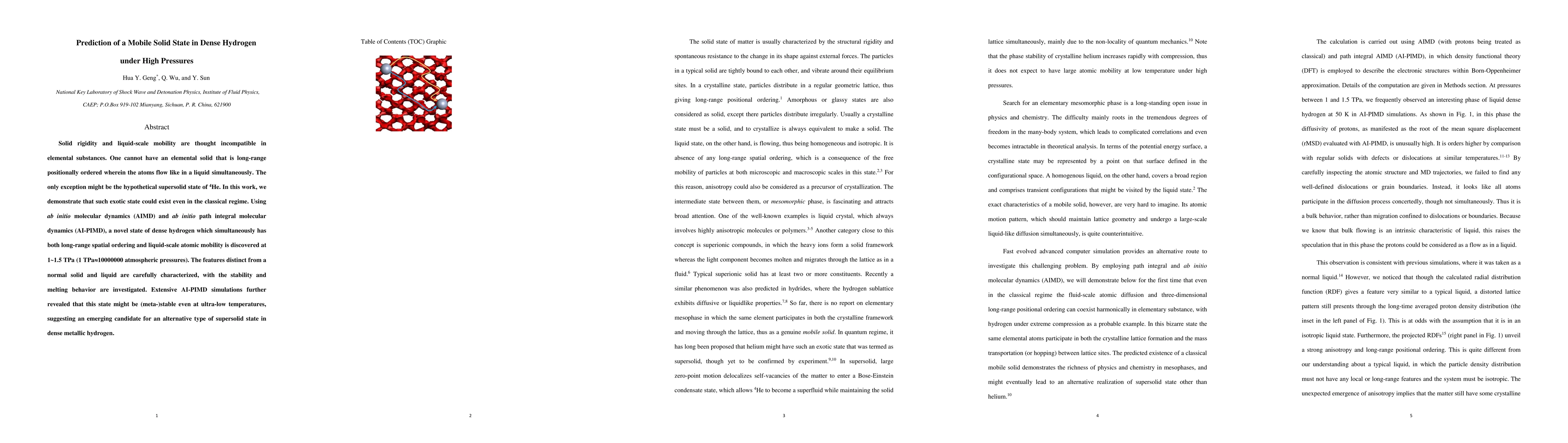 This research discovers a novel state of dense hydrogen under high pressure that exhibits both long-range spatial ordering and liquid-scale atomic mobility, challenging the notion that these properties are mutually exclusive. The findings suggest the existence of a meta-stable supersolid state in dense metallic hydrogen, characterized through advanced simulations.