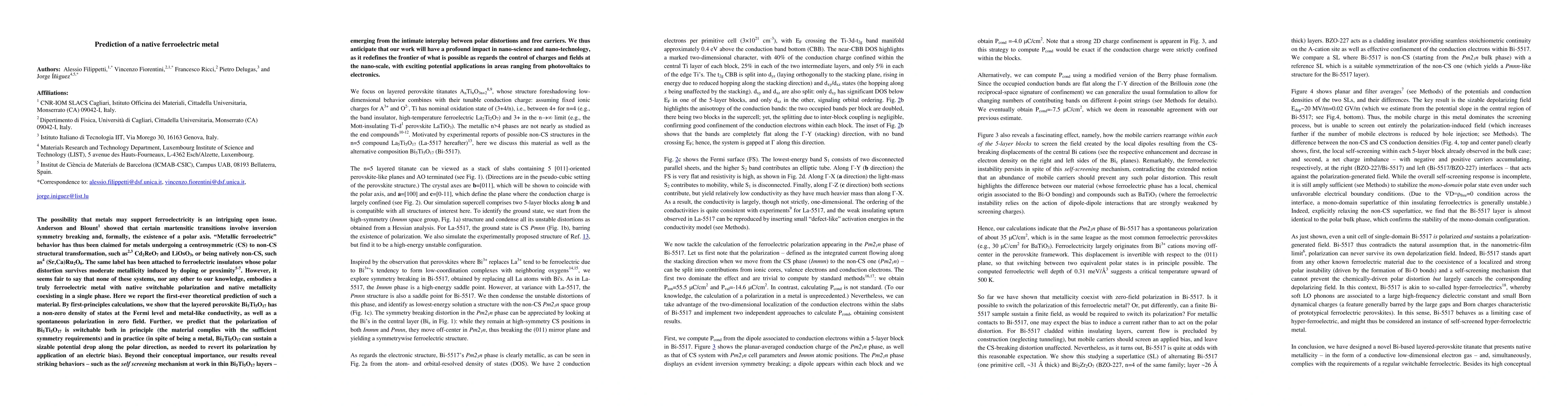 Researchers predict the existence of a ferroelectric metal, Bi5Ti5O17, with switchable polarization and native metallicity in a single phase.