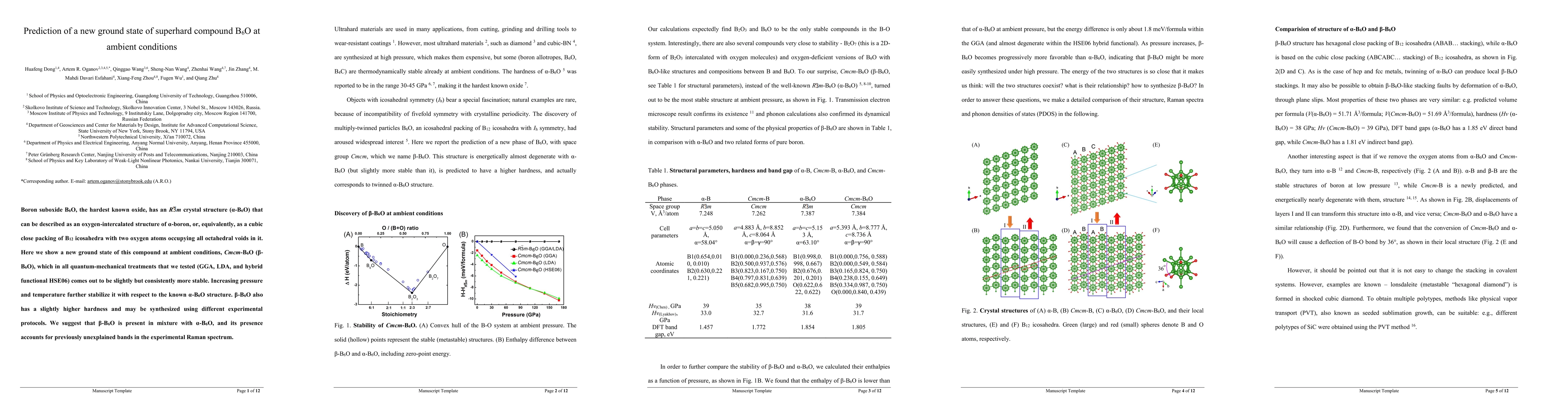 Boron suboxide B6O, the hardest known oxide, has an R-3m crystal structure ({\alpha}-B6O) that can be described as an oxygen-intercalated structure of {\alpha}-boron, or, equivalently, as a cubic close packing of B12 icosahedra with two oxygen atoms occupying all octahedral voids in it. Here we show a new ground state of this compound at ambient conditions, Cmcm-B6O (\b{eta}-B6O), which in all quantum-mechanical treatments that we tested (GGA, LDA, and hybrid functional HSE06) comes out to be slightly but consistently more stable. Increasing pressure and temperature further stabilize it with respect to the known {\alpha}-B6O structure. \b{eta}-B6O also has a slightly higher hardness and may be synthesized using different experimental protocols. We suggest that \b{eta}-B6O is present in mixture with {\alpha}-B6O, and its presence accounts for previously unexplained bands in the experimental Raman spectrum.
