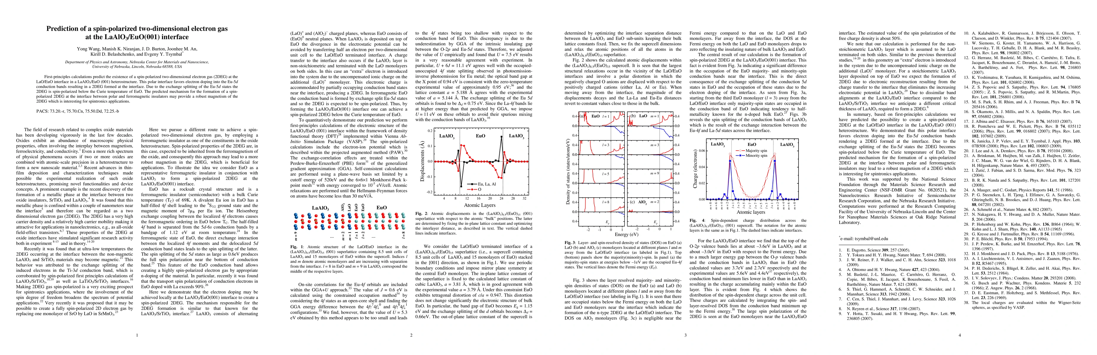 First-principles calculations predict the formation of a spin-polarized two-dimensional electron gas at the LaAlO3/EuO interface, driven by electron doping into the Eu-5d conduction bands. This spin-polarized 2DEG could enable robust magnetism, promising for spintronics applications.