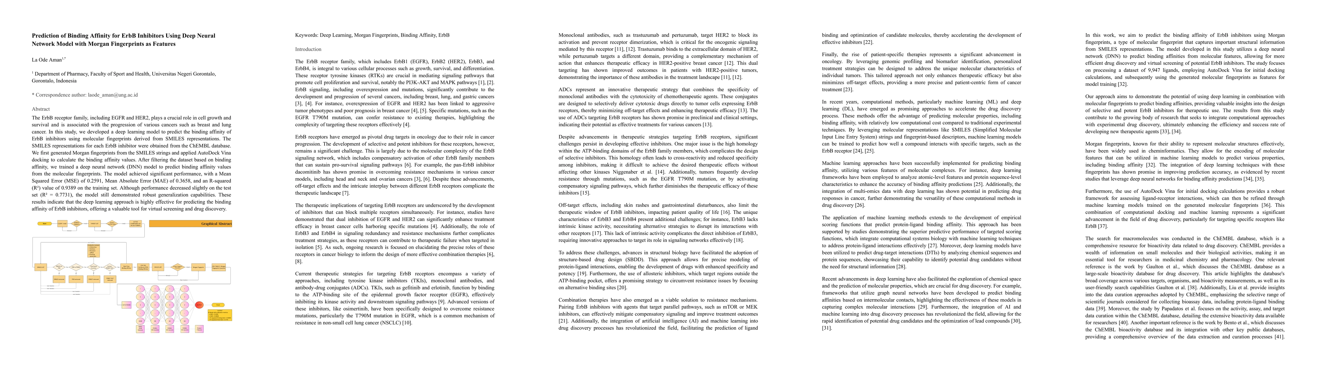 This study developed a deep neural network model using Morgan fingerprints to predict the binding affinity of ErbB inhibitors, achieving a high R-squared value of 0.9389 on the training set and demonstrating robust generalization for virtual screening in drug discovery.