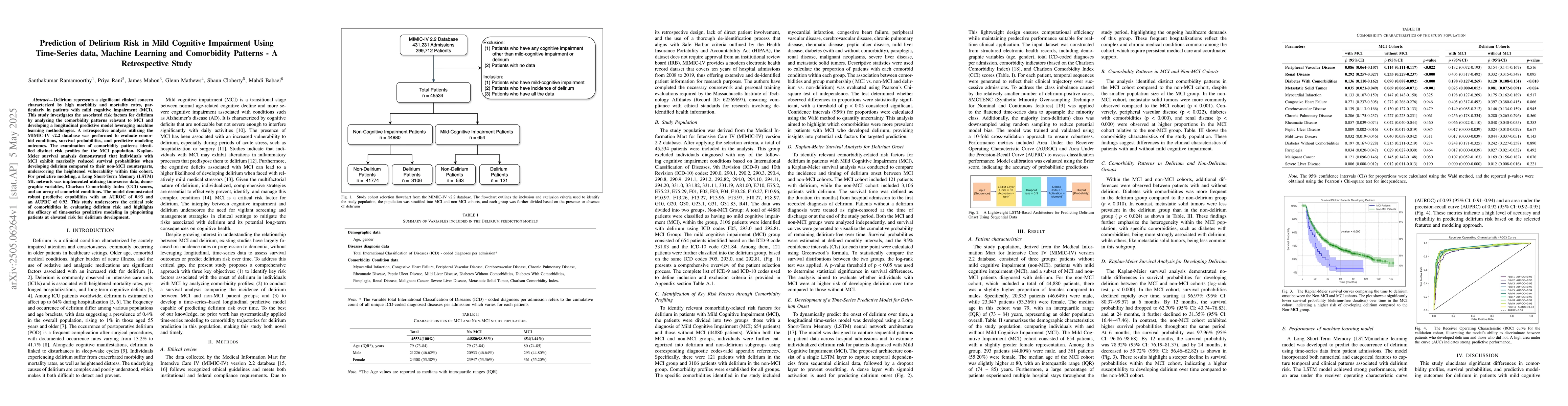 The study employed a retrospective analysis using the MIMIC-IV v2.2 database, examining comorbid conditions, survival probabilities, and applying machine learning methodologies, specifically a Long Short-Term Memory (LSTM) network, to develop a predictive model for delirium risk in MCI patients.