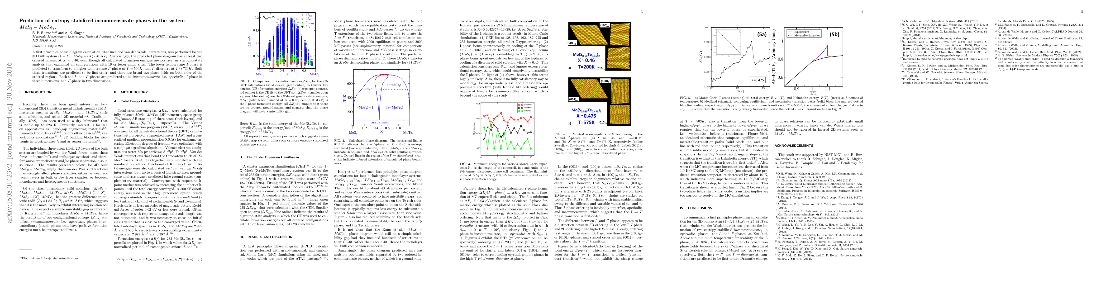 Researchers used first principles calculations to predict phase diagrams for a MoS2-MoTe2 alloy system, finding two incommensurate phases with ordered solid-solution regions at specific temperatures.