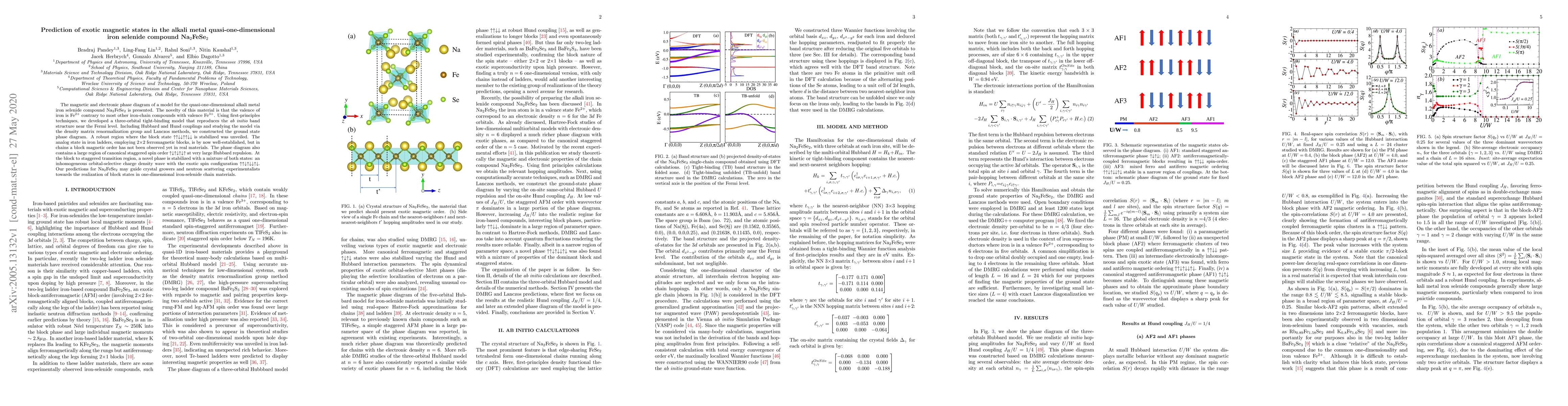This study predicts exotic magnetic states in the quasi-one-dimensional iron selenide compound Na$_2$FeSe$_2$, revealing a robust block state and a large region of staggered spin order. The research also identifies a novel phase with an inhomogeneous orbital-selective charge density wave, potentially guiding experimental efforts to realize these states in one-dimensional iron-selenide chains.