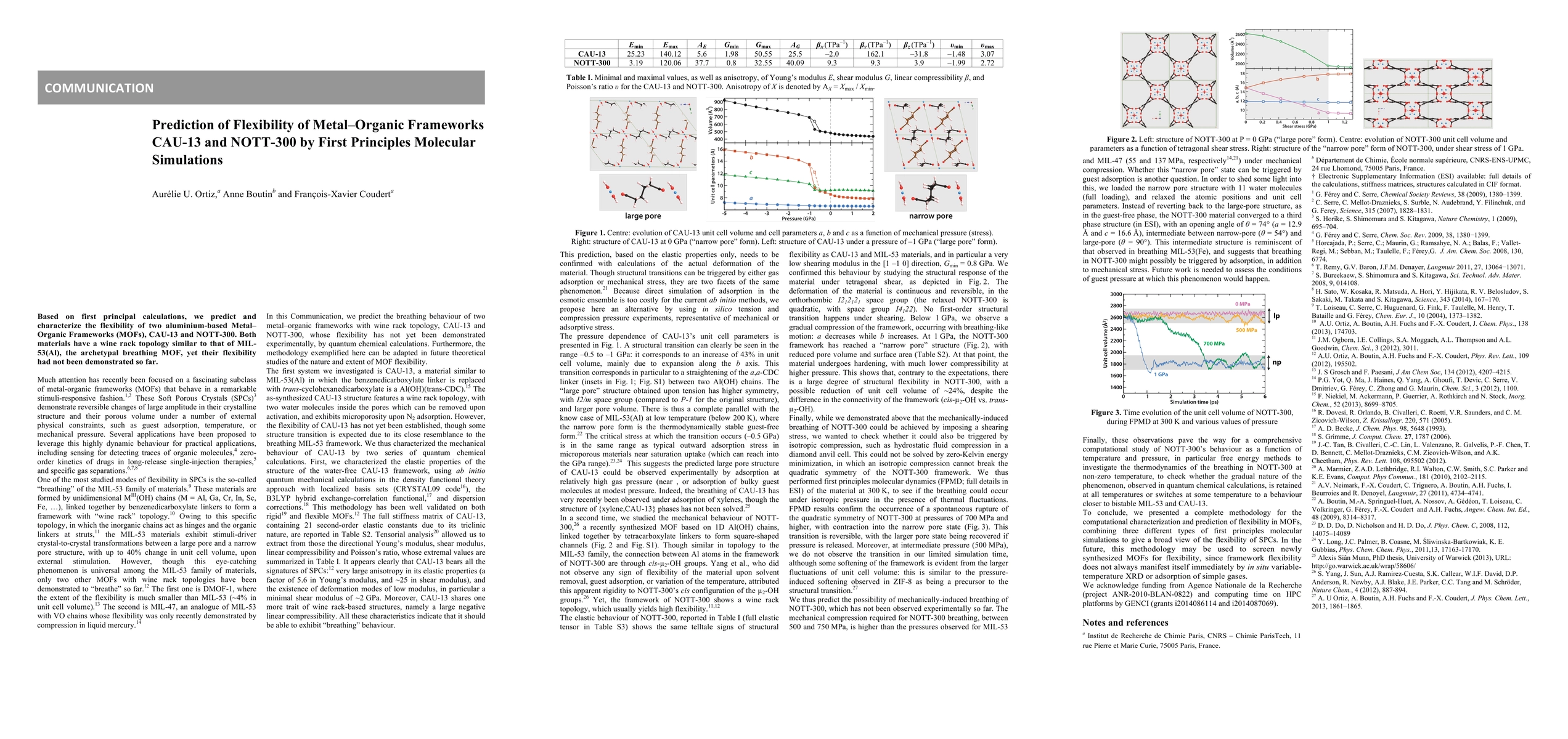 This paper uses first principles molecular simulations to predict and characterize the flexibility of two aluminium-based metal-organic frameworks, CAU-13 and NOTT-300, which share a wine rack topology with the archetypal breathing MOF, MIL-53(Al). The study aims to demonstrate their flexibility for the first time.