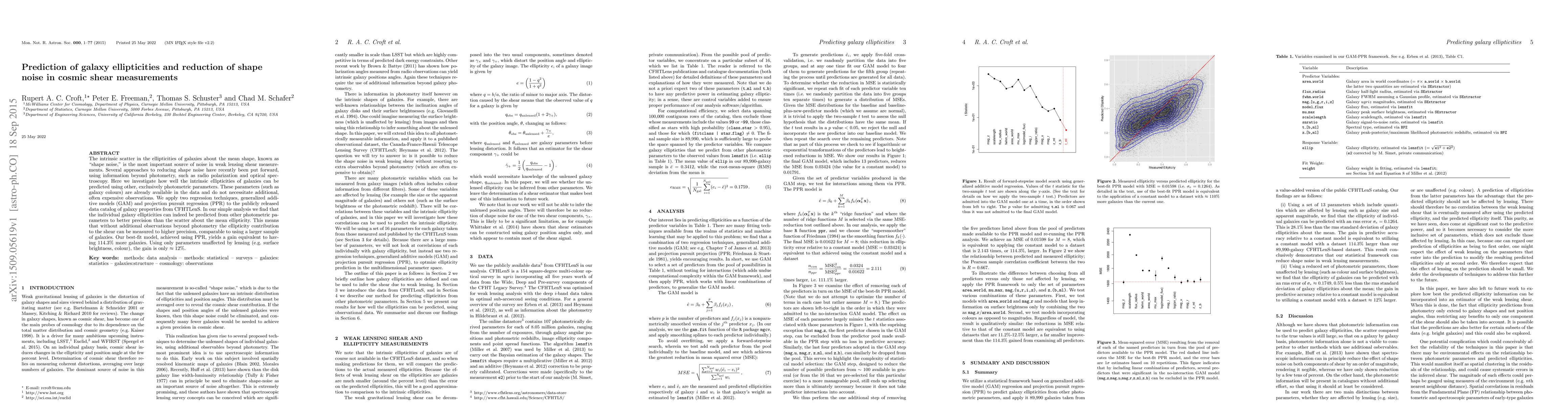 Researchers developed a method to predict galaxy ellipticities using photometric parameters, reducing shape noise in cosmic shear measurements without needing additional observations.