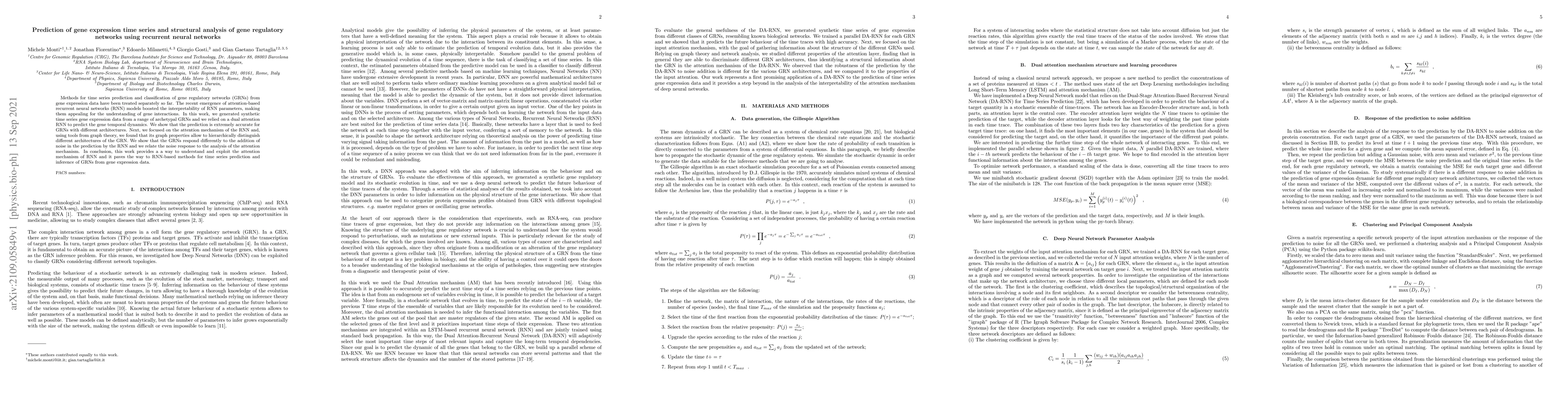 This paper uses attention-based recurrent neural networks (RNN) to accurately predict gene expression time series and analyze gene regulatory networks (GRNs). The study demonstrates the interpretability of RNN parameters through the attention mechanism, revealing how different GRN architectures can be distinguished and how they respond to noise.