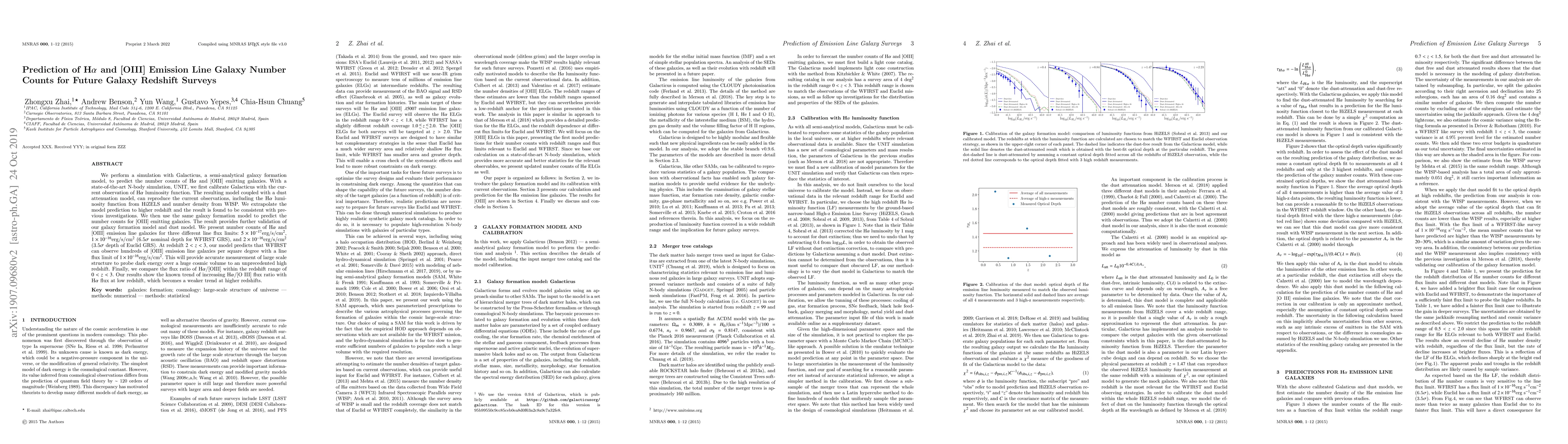 model, to predict the number counts of H$\alpha$ and [OIII] emitting galaxies.