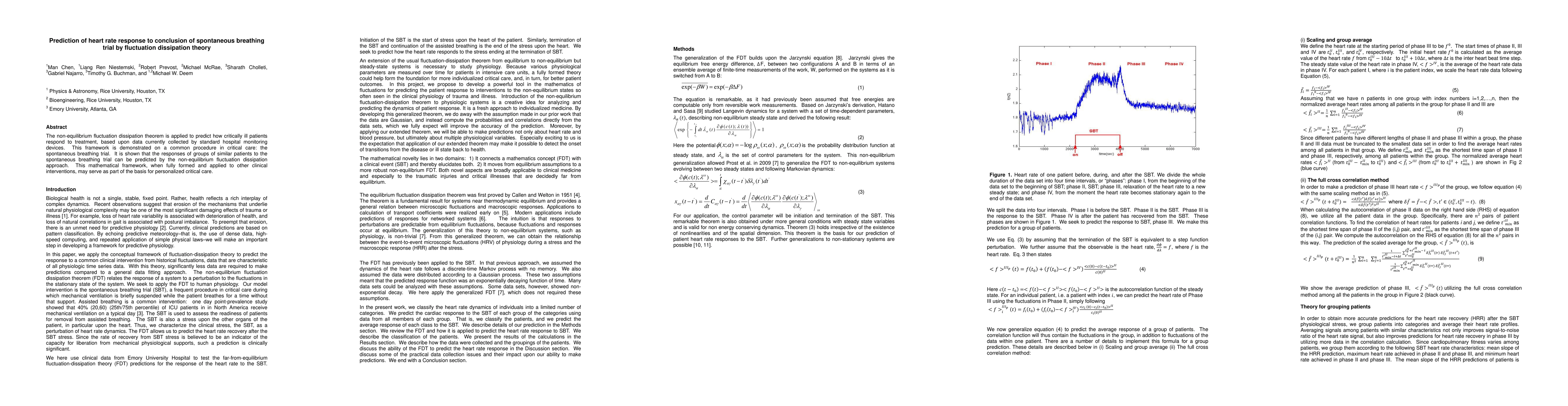 The non-equilibrium fluctuation dissipation theorem is applied to predict how critically ill patients respond to treatment, based upon data currently collected by standard hospital monitoring devices. This framework is demonstrated on a common procedure in critical care: the spontaneous breathing trial. It is shown that the responses of groups of similar patients to the spontaneous breathing trial can be predicted by the non-equilibrium fluctuation dissipation approach. This mathematical framework, when fully formed and applied to other clinical interventions, may serve as part of the basis for personalized critical care.