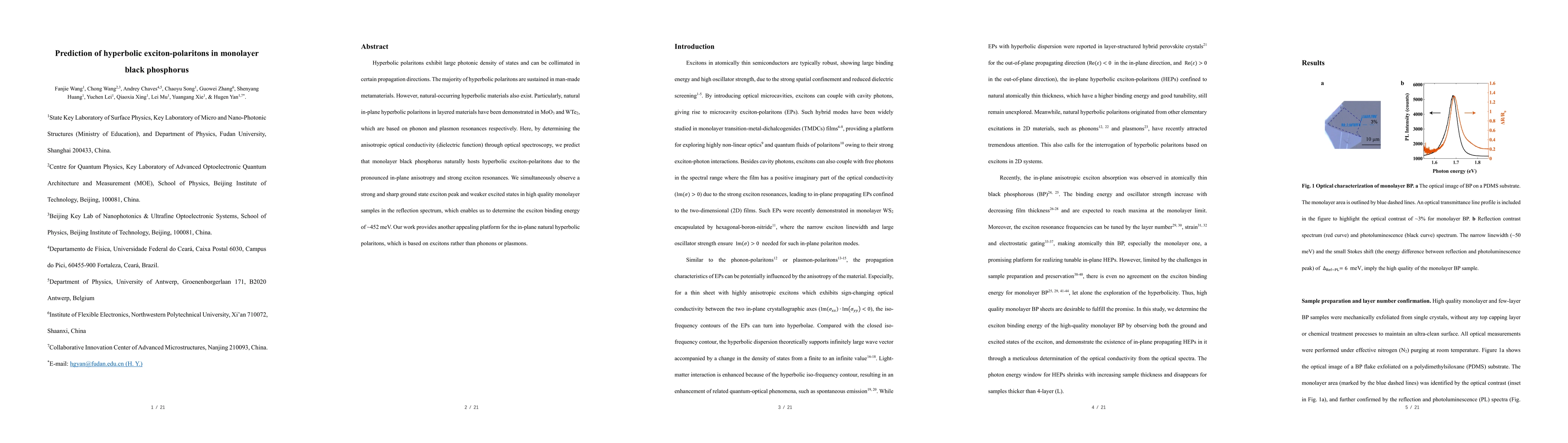 This paper predicts that monolayer black phosphorus can naturally host hyperbolic exciton-polaritons due to its pronounced in-plane anisotropy and strong exciton resonances, as demonstrated through optical spectroscopy. The study also determines the exciton binding energy of ~452 meV from the reflection spectrum, providing a new platform for in-plane natural hyperbolic polaritons based on excitons.