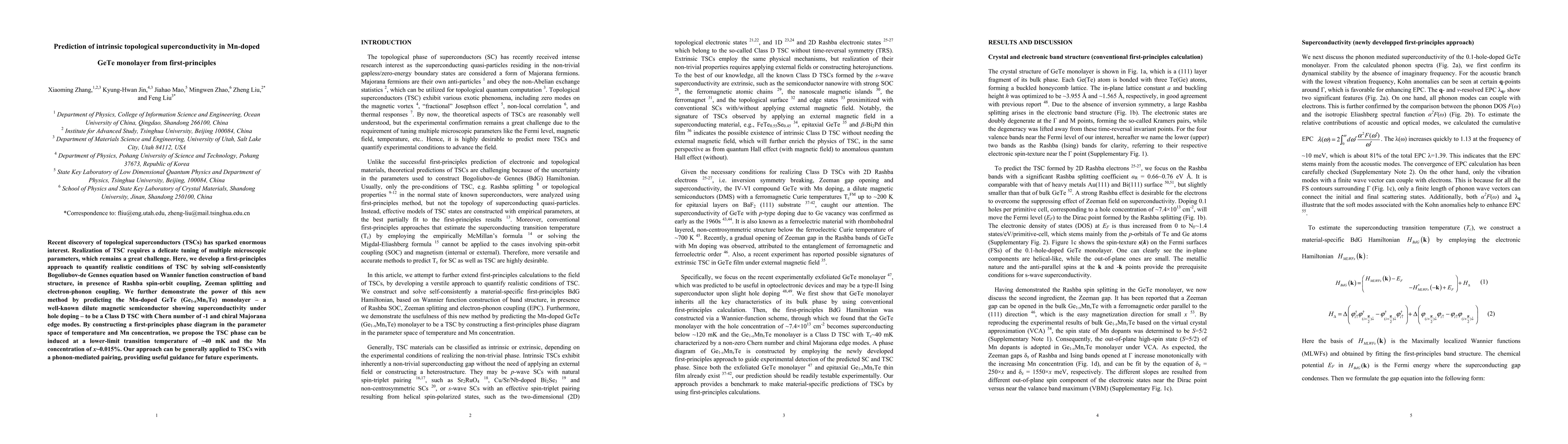 Recent discovery of topological superconductors (TSCs) has sparked enormous interest. Realization of TSC requires a delicate tuning of multiple microscopic parameters, which remains a great challenge. Here, we develop a first-principles approach to quantify realistic conditions of TSC by solving self-consistently Bogoliubov-de Gennes equation based on Wannier function construction of band structure, in presence of Rashba spin-orbit coupling, Zeeman splitting and electron-phonon coupling. We further demonstrate the power of this new method by predicting the Mn-doped GeTe (Ge$_{1-x}$Mn$_x$Te) monolayer - a well-known dilute magnetic semiconductor showing superconductivity under hole doping - to be a Class D TSC with Chern number of -1 and chiral Majorana edge modes. By constructing a first-principles phase diagram in the parameter space of temperature and Mn concentration, we propose the TSC phase can be induced at a lower-limit transition temperature of ~40 mK and the Mn concentration of $x$~0.015%. Our approach can be generally applied to TSCs with a phonon-mediated pairing, providing useful guidance for future experiments.