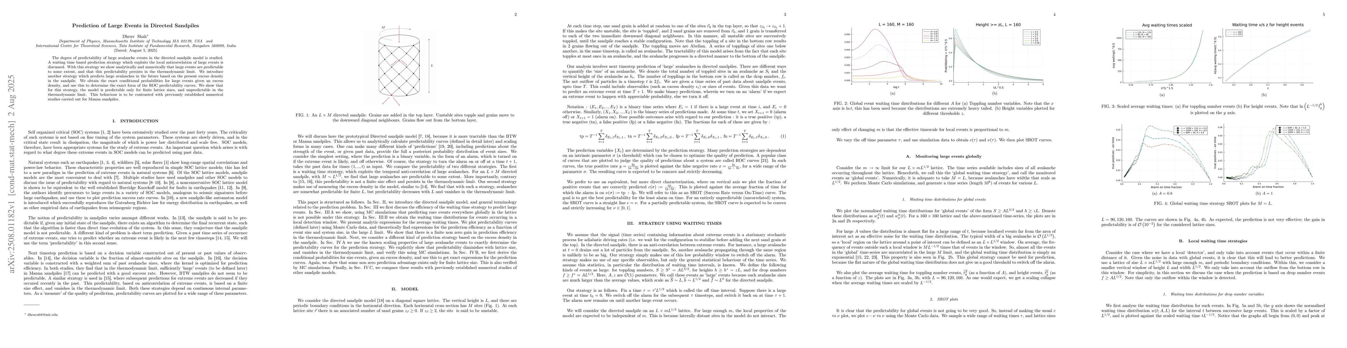 The degree of predictability of large avalanche events in the directed sandpile model is studied. A waiting time based prediction strategy which exploits the local anticorrelation of large events is discussed. With this strategy we show analytically and numerically that large events are predictable to some extent, and that this predictability persists in the thermodynamic limit. We introduce another strategy which predicts large avalanches in the future based on the present excess density in the sandpile. We obtain the exact conditional probabilities for large events given an excess density, and use this to determine the exact form of the ROC predictability curves. We show that for this strategy, the model is predictable only for finite lattice sizes, and unpredictable in the thermodynamic limit. This behaviour is to be contrasted with previously established numerical studies carried out for Manna sandpiles.
