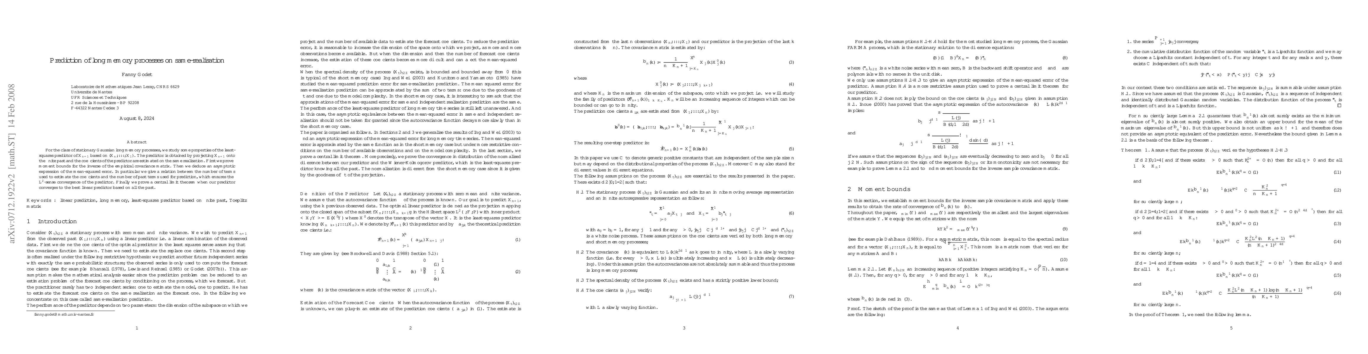 This paper investigates the least-squares predictor for stationary Gaussian long memory processes, deriving moment bounds for the empirical covariance matrix and an asymptotic mean-squared error expression. It establishes a convergence relation between the number of terms used for coefficient estimation and prediction, ensuring L^2-sense convergence, and proves a central limit theorem for the predictor.