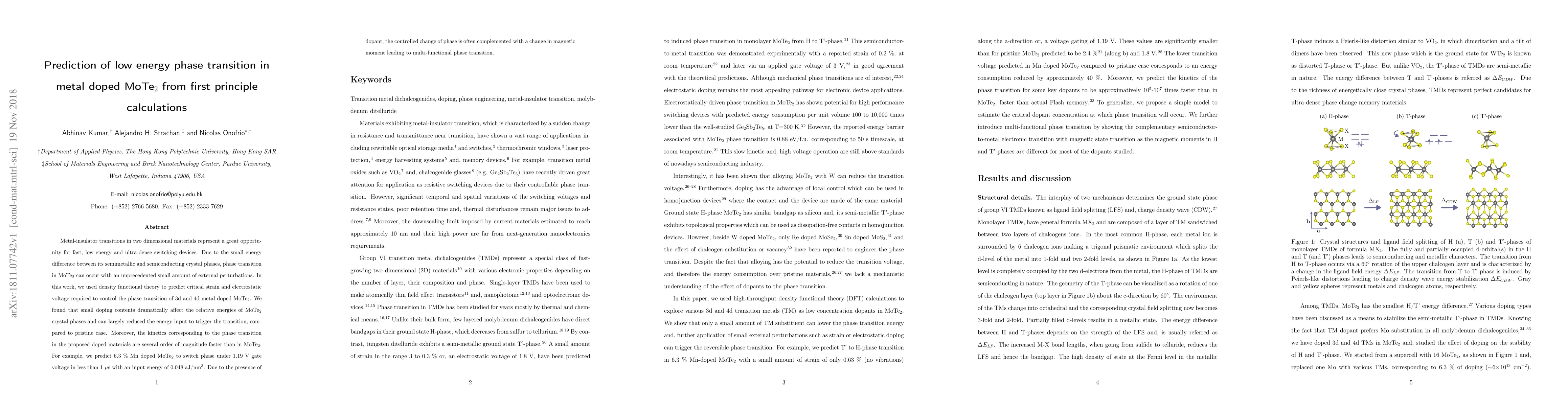 Researchers used density functional theory to predict that metal doping can trigger phase transitions in MoTe2 with significantly lower energy input than pristine materials, enabling fast and ultra-dense switching devices.