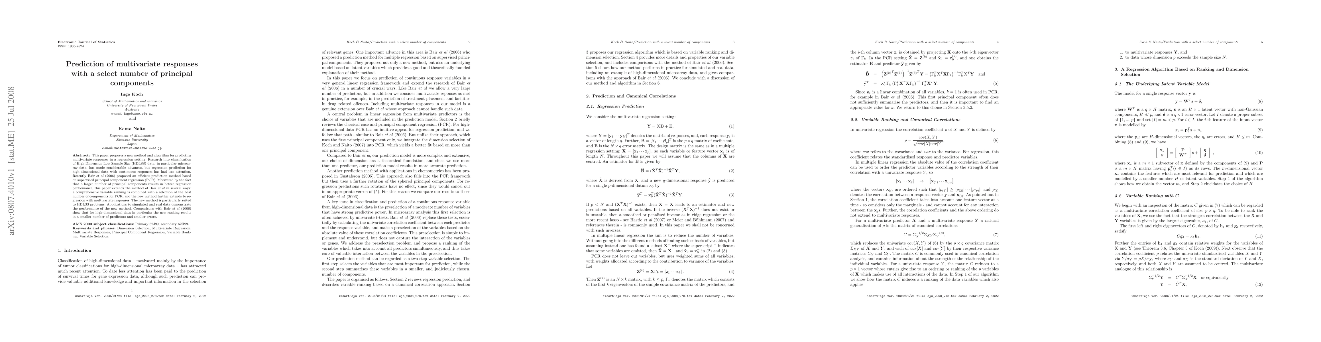 This paper introduces a refined method for predicting multivariate responses using a select number of principal components, extending supervised principal component regression to handle high-dimensional data with fewer samples. The new approach combines variable ranking with optimal component selection, demonstrating improved performance over existing methods.