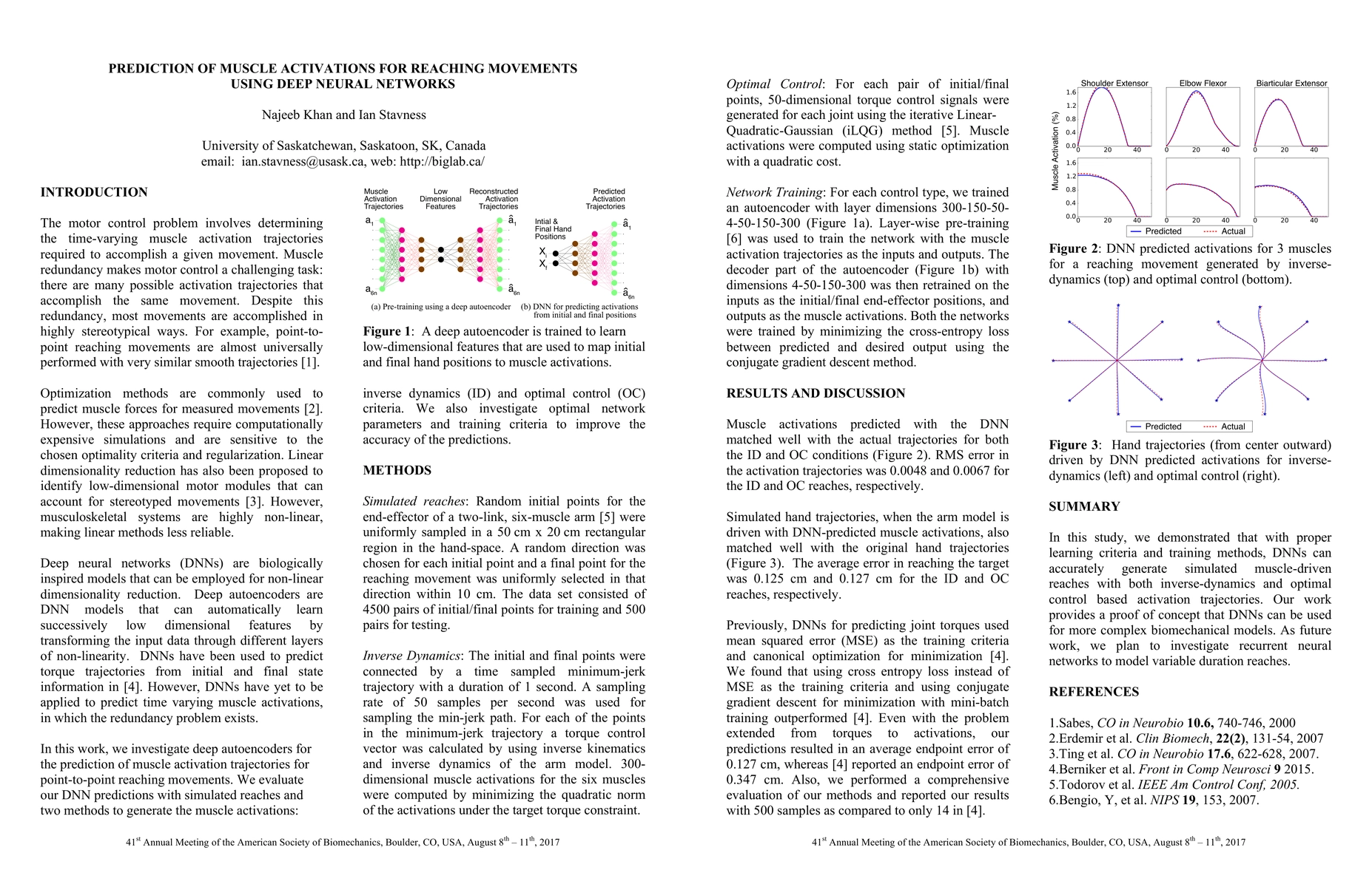 This paper explores the use of deep neural networks (DNNs) to predict muscle activation trajectories for point-to-point reaching movements, addressing the challenge of muscle redundancy in motor control. The study evaluates DNN predictions against simulated reaches using inverse dynamics and optimal control criteria, aiming to improve prediction accuracy through optimal network parameters and training strategies.