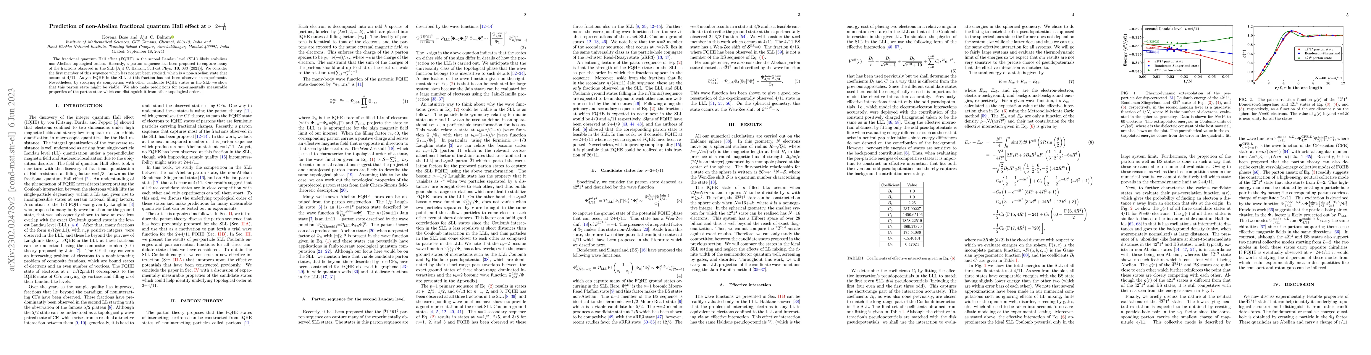 This paper investigates a non-Abelian fractional quantum Hall effect state at $\nu = 2 + \frac{4}{11}$ in the second Landau level, proposing it as a viable candidate based on theoretical analysis. It also predicts measurable properties to distinguish it from other topological orders.