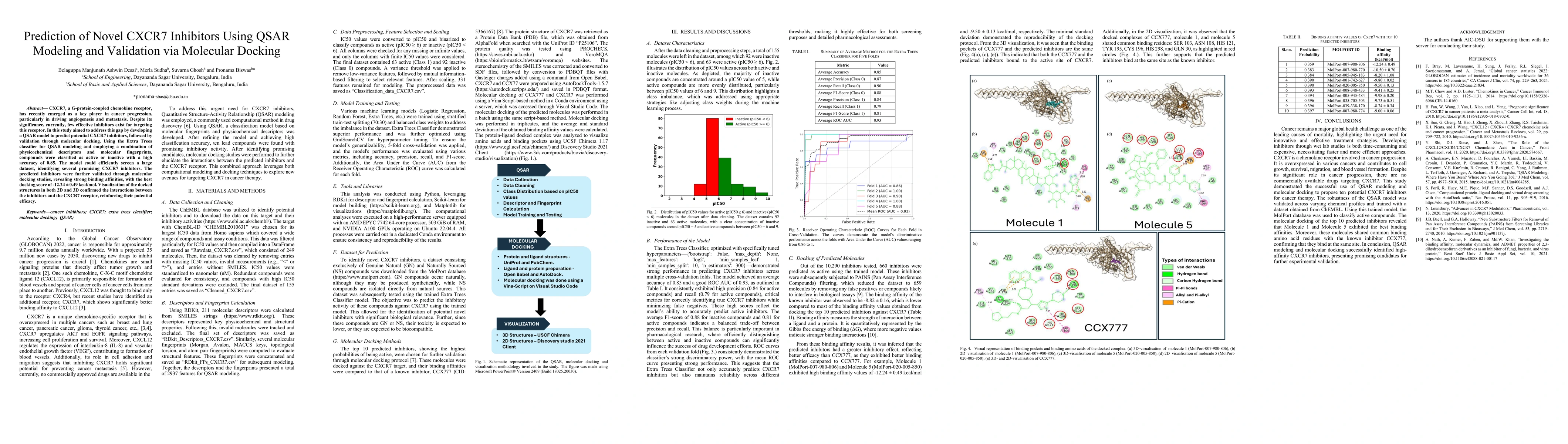 A QSAR model predicted novel CXCR7 inhibitors with high accuracy, which were further validated through molecular docking studies revealing strong binding affinities.
