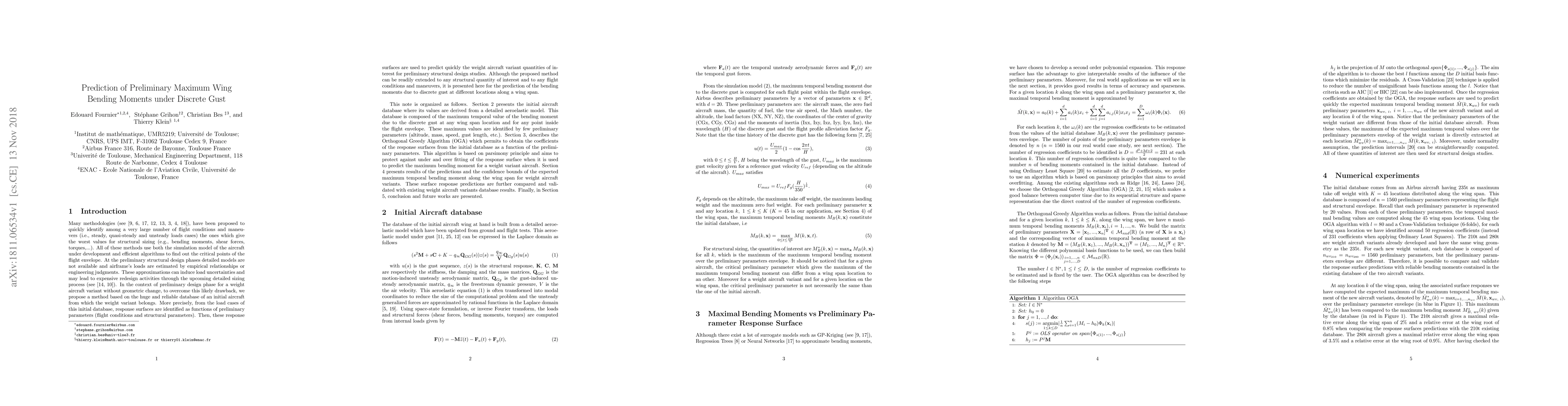 Many methodologies have been proposed to quickly identify among a very large number of flight conditions and maneuvers (i.e., steady, quasi-steady and unsteady loads cases) the ones which give the worst values for structural sizing (e.g., bending moments, shear forces, torques,...). All of these methods use both the simulation model of the aircraft under development and efficient algorithms to find out the critical points of the flight envelope. At the preliminary structural design phases detailed models are not available and airframe's loads are estimated by empirical relationships or engineering judgments. These approximations can induce load uncertainties and may lead to expensive redesign activities through the upcoming detailed sizing process. In the context of preliminary design phase for a weight aircraft variant without geometric change, to overcome this likely drawback, we propose a method based on the huge and reliable database of an initial aircraft from which the weight variant belongs. More precisely, from the load cases of this initial database, response surfaces are identified as functions of preliminary parameters (flight conditions and structural parameters). Then, these response surfaces are used to predict quickly the weight aircraft variant quantities of interest for preliminary structural design studies. Although the proposed method can be readily extended to any structural quantity of interest and to any flight conditions and maneuvers, it is presented here for the prediction of the bending moments due to discrete gust at different locations along a wing span.