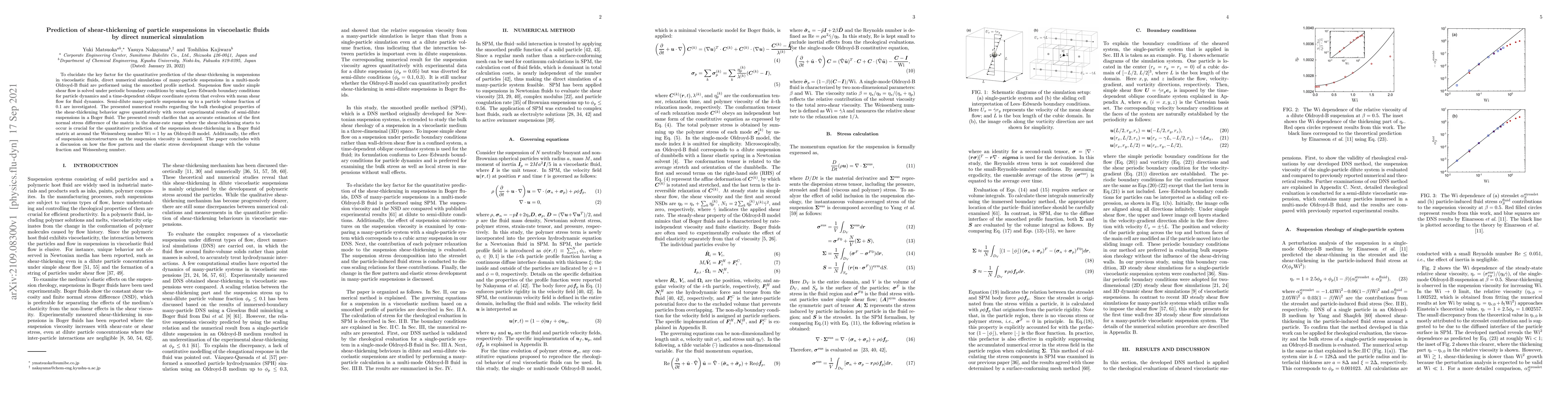 This paper uses direct numerical simulations to predict shear-thickening in particle suspensions within viscoelastic fluids, finding that accurate estimation of the first normal stress difference is key. The study reveals how microstructures affect viscosity and discusses changes in flow patterns and elastic stress with varying volume fraction and Weissenberg number.
